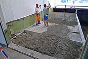 Heute wurde wieder gearbeitet auf unserer Baustelle. Der neue Boden nimmt langsam aber sicher Gestalt an. Heute war die Kofferung, sprich der Unterbau des künftigen Endbelages, dran.