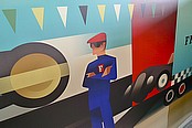 Heute war ein farbiger Tag - unser neues Wandbild wurde montiert. Gestaltet wurde dieses von Mads Berg, einem Dänischen Grafiker, der für uns schon die bestehenden Sujets entworfen hatte.