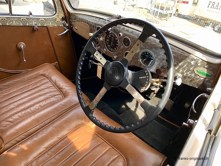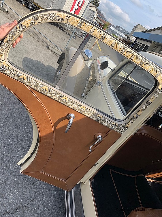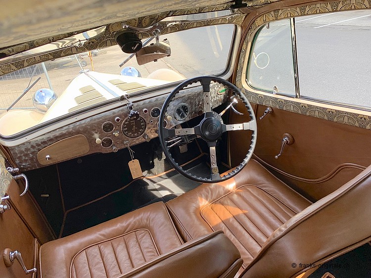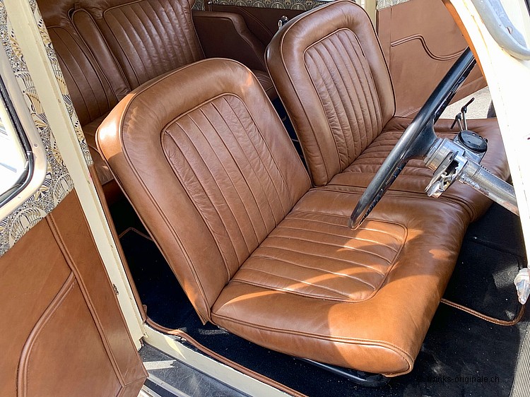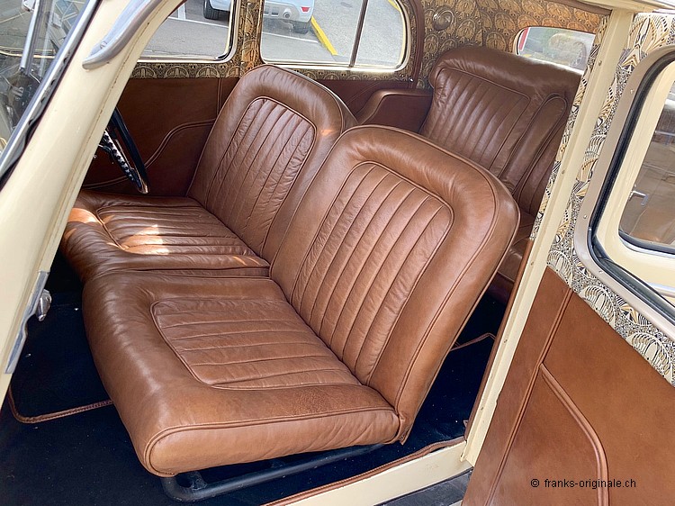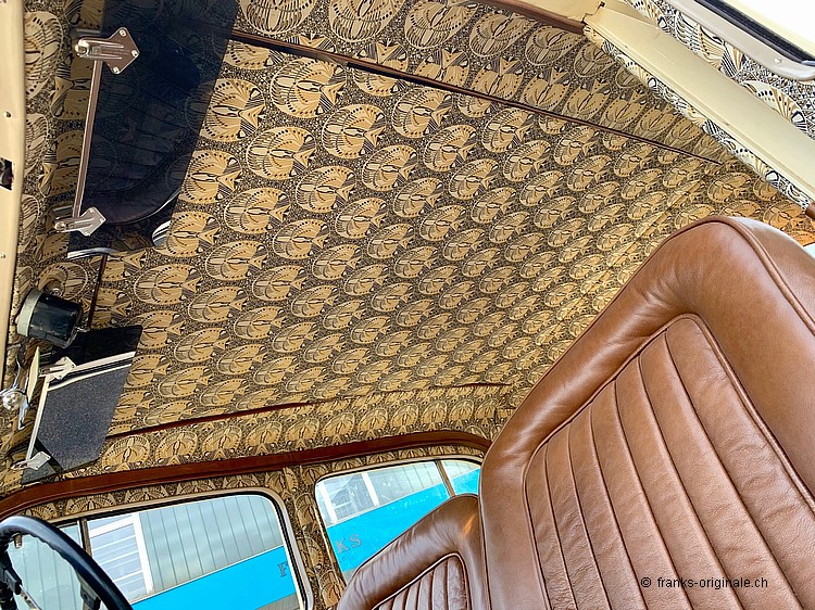 Ebenfalls zu erwähnen ist das wunderschöne und überzeugende Interieur. Unser Partner-Betrieb, Oldtimer-Atelier mit Gaby Hahn & Rolf Schiess, hatten hier perfekte Arbeit geleistet. Sie beherrschen nicht nur ihr Handwerk - sie überzeugten auch bei der Auswahl der Materialen. Alles passt Hand in Hand und nimmt den Zeitgeist des Fahrzeuges und der Zeit vollends auf! Dieses Interieur beeindruckt jeden, der einen Blick ins Innere des Fahrzeuges wagt ... wir sagen ebenfalls bravo - überzeugende Arbeit!