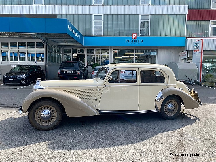 FRANKS hatte sich dieser Herausforderung gestellt - einen Talbot, welcher über 10 Jahre gestanden hatte, wieder ins Leben zurück zu führen. Das Resultat ist ein feiner, ehrlicher und auch überzeugender Franzosen-Klassiker von Talbot. Das Fahrzeug war in einem unfahrbaren Zustand. Motor und Getriebe drehten zwar - mussten jedoch umfangreich überholt werden. Die Karosserie war noch in einem guten Zustand - der Lack ebenfalls! Das Interieur hatte stark gelitten und war nicht mehr zu retten!