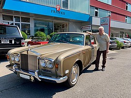 Die Sonne strahlt - der Rolls Royce strahlt ... und der neue Besitzer tat dies auch! Zufriedenheit macht sich breit. Und die Vorfreude auf die bevorstehende erste Fahrt nach Hause! Eine schöne Geschichte ...