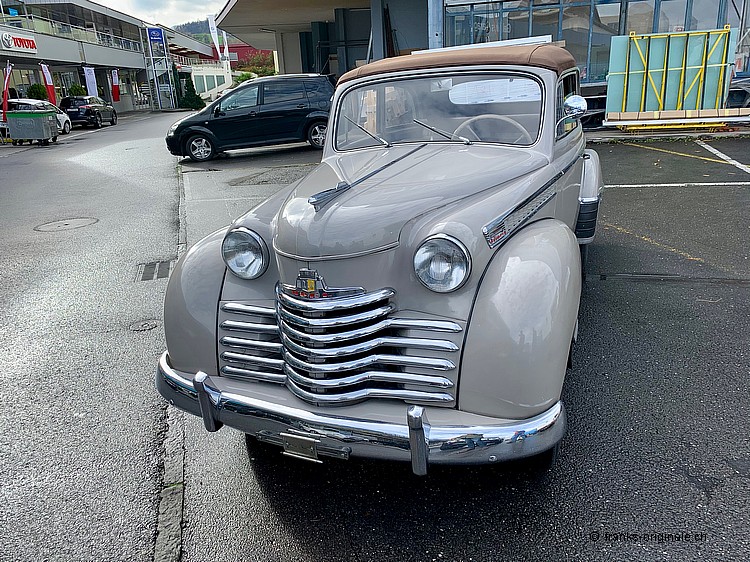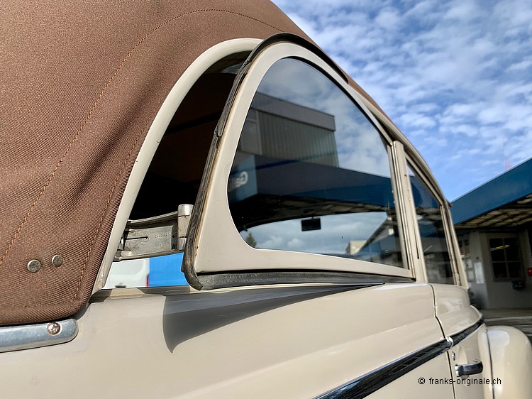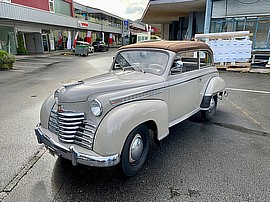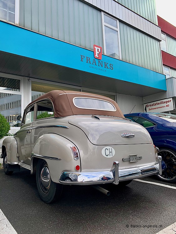 Dieses schöne OPEL Cabrio aus den 1950er Jahren ist ein sensationeller Hingucker. Aus jedem Blickwinkel findet man schöne Details - fein und exklusiv gearbeitet: Sehr schönes Chrom-Kleid rund ums Fahrzeug, funktionierende Winker-Blinker, herrliche Farbgebung, originales Interieur aus der Zeit, ein perfektes Cabrio-Faltdach und ein Dachrahmen mit Stellfenstern an den Seitenscheiben. Die eindrückliche Silhouette überzeugt und erinnert an eine Generation von Fahrzeugen, welche die unbegrenzten Möglichkeiten dieser Nachkriegs-Epoche beispielhaft wiederspiegelt.