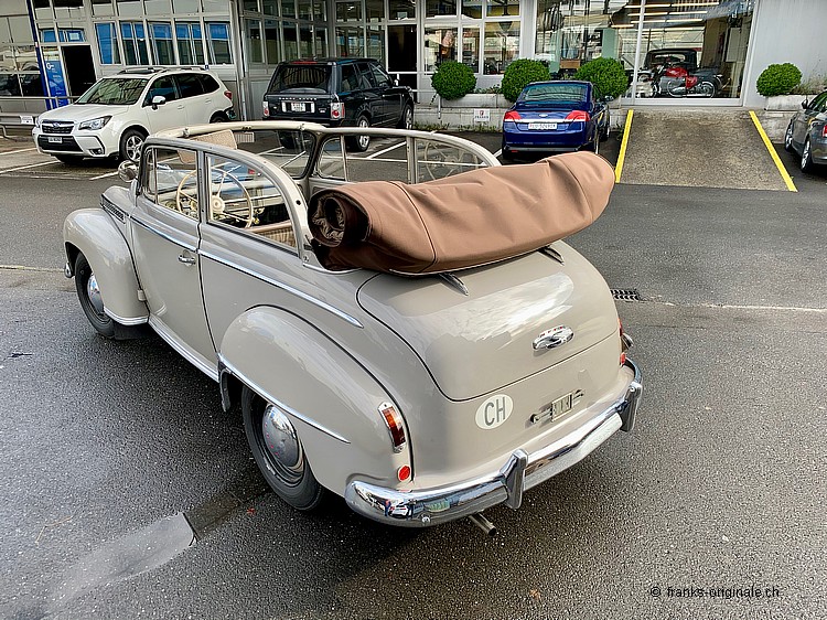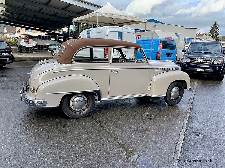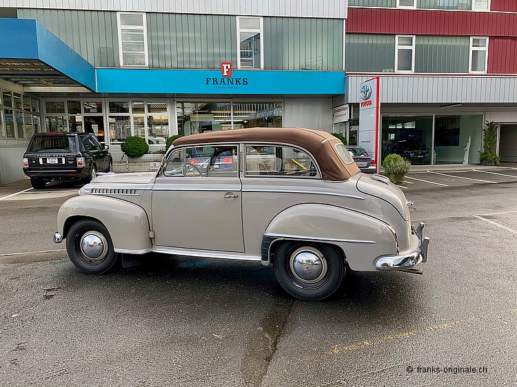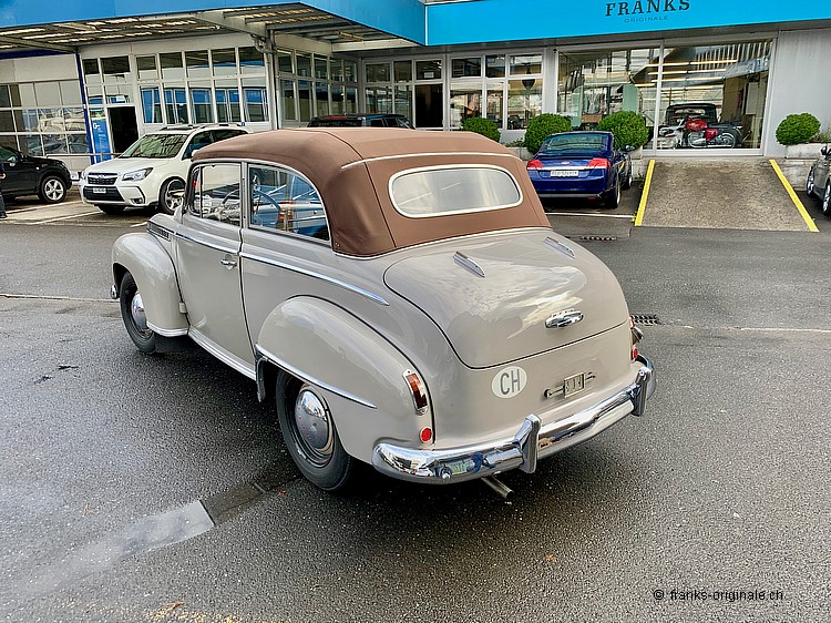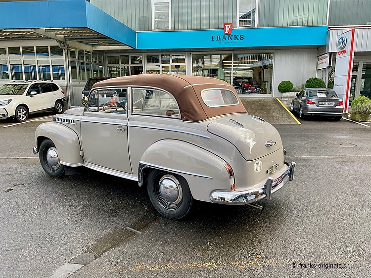 Dieses wunderbare Limousinen-Cabrion von OPEL ist 1.) heute unter Kennern sehr gesucht, 2.) sehr stilecht und hübsch anzusehen und 3.) sehr attraktiv, was das Preis- / Leistungs-Verhältnis angeht. Dieses Cabrio überzeugt zudem durch Originalität und durch den herrlich schönen Erhaltungs-Zustand! Und - für uns Schweizer ganz speziell - der künftige Besitzer bekommt ein Fahrzeug, welches in der Schweiz montiert / zusammen gebaut wurde und seit seiner Geburtsstunde immer auf unseren Strassen unterwegs war. Und - noch ganz wichtig bezüglich History: Der künftige Besitzer wird gerade mal der dritte Besitzer sein! Denn nur zwei Vorbesitzer teilen sich die 67 Jahre lange Zeit seit der 1. Auslieferung in der Schweiz (57 Jahre beim 1. Besitzer und 10 Jahre beim 2. Besitzer). Toll - diese Geschichte, oder?