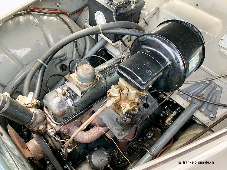 Angetrieben wird das Limousinen-Cabrio von einem 4 Zylinder-Motor mit 1.5 Liter Hubraum, welcher 43 PS Leistung und somit eine Spitzengeschwindigkeit von 110 km/h erzeugt. Das sind natürlich keine Racer-Eigenschaften - bei einem Gesamtgewicht von 884 kg ist man mit diesem Cabrio aber trotzdem sehr flott unterwegs. Und der Spritverbrauch mit ca. 8.0 Ltr. pro 100 Kilometern hält sich dafür auch im Rahmen. Alles in allem eine gute und ausgewogene Kombination für gemütliche Fahrten über die Landschaft!