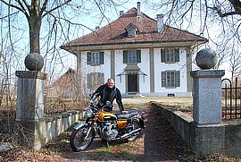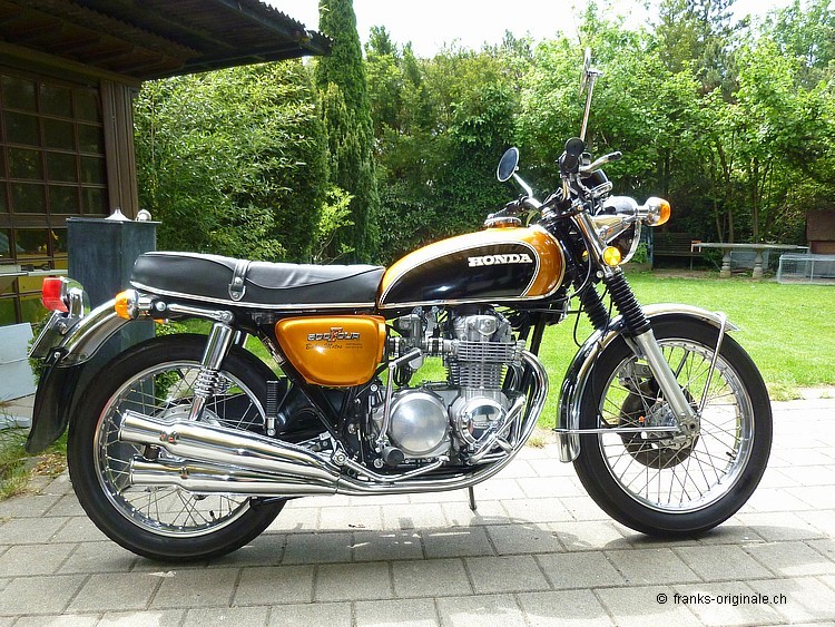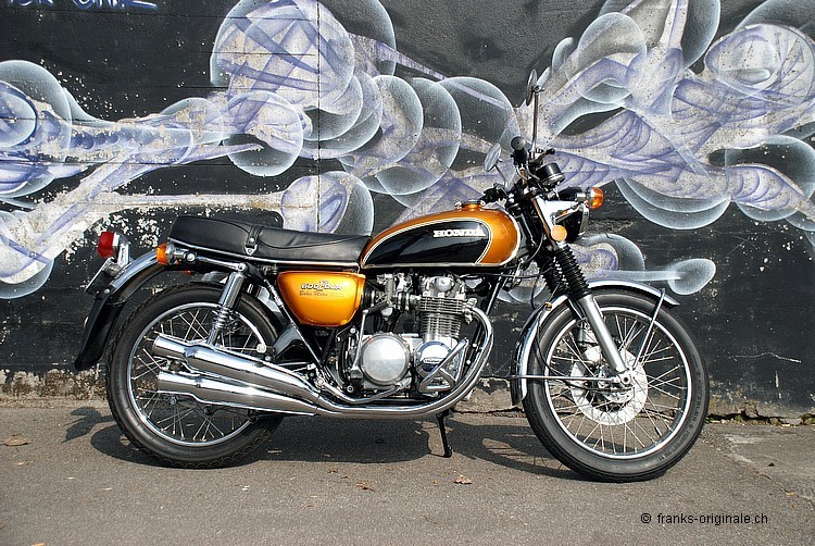 Gesagt, getan. Sofort wurden wir handelseinig! Ohne das Bike selber gesichtet zu haben, liess ich den gold-schwarzen Traum von Badertscher in den Kanton Bern überführen. Die Honda hielt, was Herr Lutz versprochen hat. Ein wirklich wunderschönes Original. Das Ganze noch synchronisiert und mit dem Finish des grossen Honda-Experten versehen - voilà, schon stand das Retro-Bike zwischen einer „Z“ und der Harley in meiner Garage.