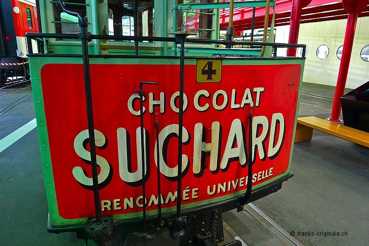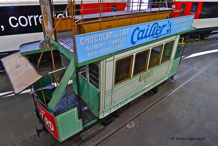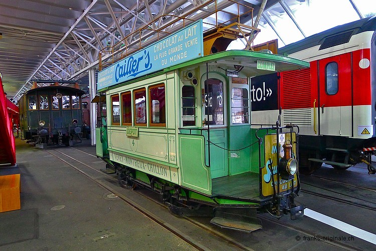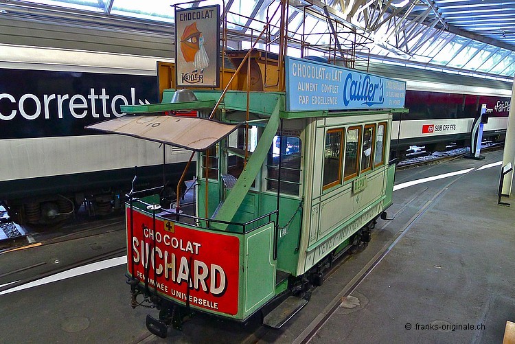 Dieses nostalgische Tramm aus dem schönen Wadtland transportierte einst Personen zwischen Vevey und Chillon und ist behangen mit tollster Reklame von Schweizer Schockoladen-Herstellern wie Suchard, Kohler, Cailler, Gala Peter usw. Firmen- und Produktenamen, die es heute z.T. gar nicht mehr gibt. Diese wurden einst von der heutigen Nestlé übenommen und zu einem Einheitsbrei vereint. Schade eigentlich ... Dafür gibt es noch einen echten Zeitzeugen aus dieser schon fast vergessenen Zeit - das Vevey-Montreux-Chillon-Bändli, das mit Würde und Stolz im Verkehrshaus Luzern steht. Es lässt nur ahnen, wie es sich zu dieser Zeit anfühlte. Alles lief resp. rollte noch etwas anders und ruhiger und die Leute hatten noch die Musse, die schöne Fahrt zwischen den beiden Städten entlang der Riviera bis hin zum Schloss Chillon zu geniessen. Eine Fahrt entlang dem schönen Genfersee. Das Vevey-Montreux-Chillon-Bändli demonstriert eine schöne Symbiose aus Emailschildern, Reklame aus der Jahrhunder-Wende (1900), dem unverwechselbaren Jugendstil und einer anmutenden und sauber angefertigten Fahrgast- und Führerkabine inkl. einem Cabrio-Dach oben drauf. Schön - die Bilder sprechen ja eigentlich für sich ... viel Freude damit. Ein Besuch im Verkehrshaus lohnt sich immer!