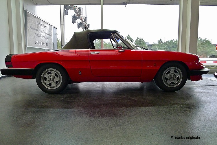 Schönes und unverbasteltes Alfa Cabrio aus Privatbesitz. Gut gewartet und liebevoll gehegt. Mit leichten Gebrauchtspuren - dafür in gut erhaltenem Originalzustand. Ehrlich und bereit für eine erste Ausfahrt zu zweit. In der schönen Farbgebung mit rotem Lack, beigen Ledersitzen und schwarzen Teppichen wirkt der Spider für sich selber. Der starke 2.0 Ltr. Motor überzeugt gleichermassen wie die präzise Schaltung. Das Verdeck ist noch in gutem Zustand - am Fahrzeug gibt es keine weiteren Arbeiten zu tun! Das Fahrzeug wurde im Sommer 2010 auf der Motorfahrzeugkontrolle vorgeführt und ohne Mängel abgenommen. Es ist also bereit für die nächste Ausfahrt - will heissen: Einsteigen und los fahren.