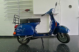 Die erste Vespa, die 1946 auf den Markt kam, hieß „Paperino“ (Entchen), hatte 98 cm³ Hubraum und war maximal 60 km/h schnell. Ihr Erfinder war Corradino D´Ascanio - ein Ingenieur, dessen Traum es war, Hubschrauber zu bauen. Er erfand das Konzept der Vespa kurz nach Kriegsende im Auftrag von Enrico Piaggio. Die Ur-Vespa „98“ sollte einfach, sparsam und leicht fahrbar sein und keine Motorenteile haben, an denen man sich schmutzig machen konnte. Daher war der Motor komplett verdeckt untergebracht. Der Reifenwechsel sollte so einfach wie bei einem Auto sein. Unsere Vespa stammt aus dem Jahre 1979, wurde technisch und Lack-mässig überarbeitet. Mit nur 25´000 km Laufleistung zeigt sich unsere Vespa von der ihrer besten Seite. Gut eingefahren würden wir meinen! Mit Sicherheit viel Fahrspass - der Sympathiebonus auf der Strasse ist garantiert!