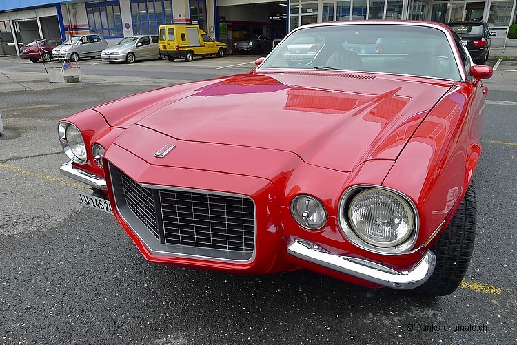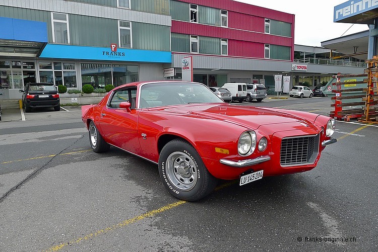 Herzliche Gratulation dem neuen Besitzer dieses wunderschönen, klassischen Amis aus den wilden 70ern. Dieses Fahrzeug wurde bis ins letzte Detail zerlegt, dann sorgfältig restauriert und anschliessend komplett wieder aufgebaut. Dieser traumhaft schöne Chevrolet Camaro RS/SS 350 in der Farbgebung 'Matador-rot' steht nun in (fast) neuem Zustand da und geniesst sein neues Zuhause in der Innerschweiz. Es ist einfach unglaublich - Sachen gibt's, die gibt's gar nicht ... Der Restaurator hatte bei diesem Objekt ganze Arbeit geleistet. Ein absolut begeisterter Ami-Liebhaber und Freak restaurierte diesen Chevy Camaro in unzähligen Stunden. Das Resultat ist selbssprechend! So sieht ein wirklich schönes und ehrliches Fahrzeug aus. Professionell, detailgetreu und nachhaltig solide kann diese Arbeit wohl beschrieben werden. Ab sofort ist dieser Camaro mal öfters in Luzern zu sehen. Und bitte erschrecken Sie dann nicht - der Sound ist überraschend urchig ... aber absolut original ;-) Danke für den Besuch bei FRANKS - gerne immer wieder; das macht Spass!