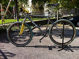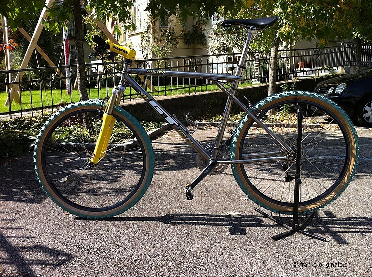 Der teuerste und edelste Rahmen von GT überhaupt. Ein Bike, das heute noch überall für Aufmerksamkeit sorgt. Ein GT-Titanium-Bike mit den allerbesten Bauteilen wie Cris King Naben und Steuersatz, XTR 950 Schaltung und Bremsen, Syncros Titanium Sattelstütze und Lenker und Judy SL Federgabel mit Titaniumschrauben. Die Gabel wurde zusätzlich mit Speed Springs und White Brothers Hardbody Aluminiumdämpfer getuned. Unser Xizang befindet sich im absoluten Neuzustand - wie aus dem Laden! Unverbraucht, schön und im perfektem Sammlerzustand. Richard Long und Gary Turner als Innovatoren GT Bicycles wurden 1979 vom BMX-Rennveranstalter Richard Long und dem Drag Racer Gary Turner gegründet. Gary schweisste die Rahmen aus CrMo-Rohren in seiner Garage in Santa Ana, Californien USA. Als Markenname wurden Gary’s Initialen GT verwendet. Anfänglich produzierten die beiden ausschliesslich BMX-Bikes, die unter anderem auch von Turner’s Sohn bei BMX-Rennen gefahren wurden. 1984 stiegen die beiden in den wachsenden MTB-Markt ein. Ihre ersten Mountainbikes waren stark an das Design ihrer BMX-Cruiser angelehnt. Das berühmte Triple Triangle Design (drei Dreiecke) wurde erst 1987 eingeführt.