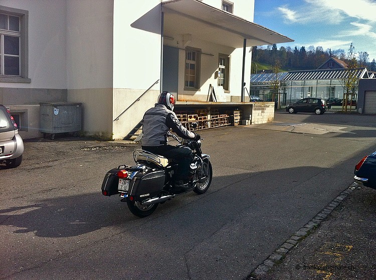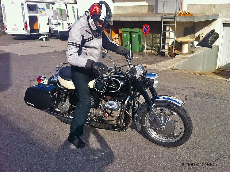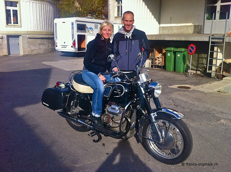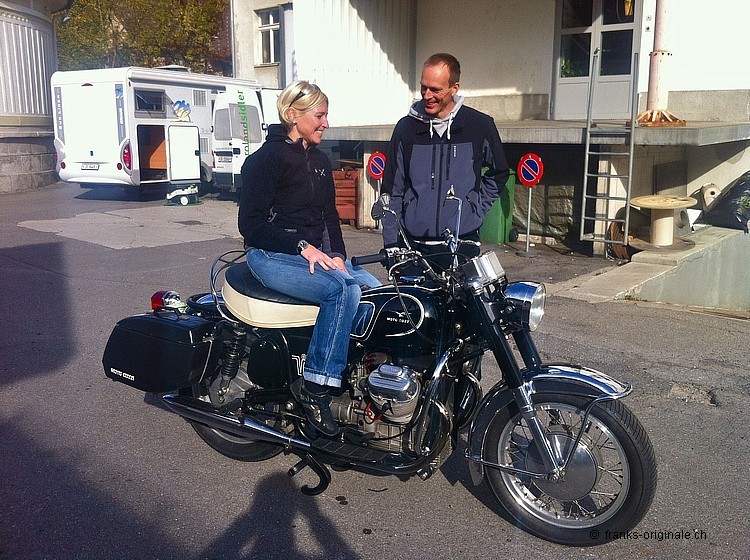 Die eigentliche Übergabe der Guzzi fand bei Geni Eicher in Unterägeri statt. Geni Eicher hatte nämlich die letzten Arbeiten und die Schlusskontrolle an unserem Motorrad durchgeführt. Bei dieser Gelegenheit haben wir die Übergabe gleich in Unterägeri im Hause Eicher Motos geplant. Schön, dass die Guzzi nun wieder auf die Strasse kommt. Wir finden, sie ist in den richtigen Händen - bei einem Kenner der Motorrad-Szene! Schön auch, dass seine Partnerin ebenfalls grosse Freude daran hat. Eine erste Ausfahrt wird wohl nicht lange auf sich warten lassen ... und mit Sozius macht eine Fahrt gleich doppelt Spass. Wir wünschen eine gute Fahrt und viele schöne Kilometer auf dem neuen Italienischen Kult-Bike mit V-Motor. Liebe Grüsse und bis bald einmal wieder. Frank