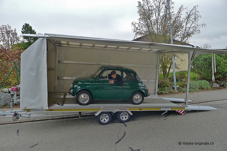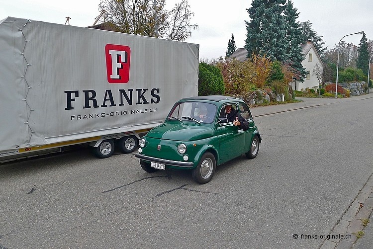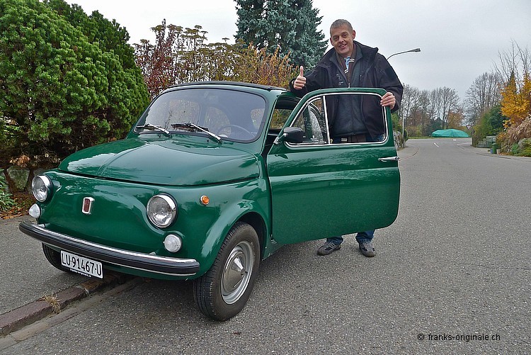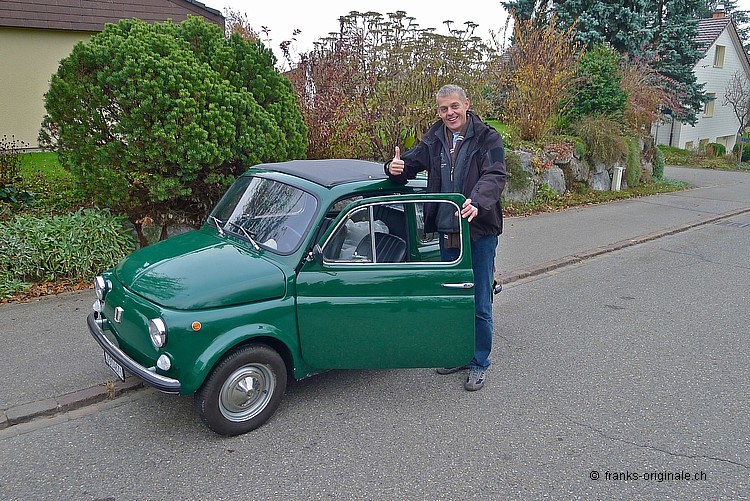 Nochmals ganz herzlichen Dank für das Vertrauen in FRANKS und für deine unkomplizierte Art. Wir dürcken dir die Daumen mit dem kleinen Fiat und wünschen dir viele sorgenfreie und genussvolle Ausfahrten. Geniesse die letzten Sonnentage in diesem wunderbaren Spätherbst ... Faltdach zurück und Kopf raus :-) Eine schöne Kombo - der urchige Fiat 500-Klassiker neben dem bulligen hightech Porsche! Schönes Bild ... da sprechen Generationen und Zeitgeister! Wir hoffen, wir sehen uns bald wieder einmal bei uns im Showroom - die Kaffee-Maschine ist bereit. Liebe Grüsse aus Kriens, Frank