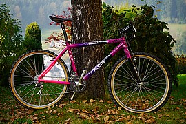 Etwas vom Allerfeinsten in Sachen Bike und Lackierung bietet das KLEIN Attitude in der Storm-Ausführung. Jedes Bike wurde einzeln vom Airbrusher lackiert und persönlich mit den Initialen signiert. Ein Einzelstück sozusagen. Die Storm-Lackierung wurde ab dem Jahre 1993 gefertigt und war während dem ersten Jahr ausschliesslich den Teamfahrern vorbehalten. Ab 1994 konnte dann jedermann diese Lackierung bestellen - jedoch nur gegen einen saftigen Aufpreis! Unser KLEIN Attitude Storm befindet sich in einem bemerkenswert gutem Gesamtzustand, ist unverbastelt und mit den im 1994 erhältlichen Top-Komponenten (XT) eingekleidet. Das Bike wurde aus den USA importiert. Die original Käuferrechnung aus dem Jahre 1994 und ein Manual sind vorhanden. Gary KLEIN - Firmengründer und Konstrukteur Gary Klein startete Mitte der 70er Jahre ein Hochschulprojekt und begann mit zwei Freunden Rennrad-Rahmen aus Aluminium herzustellen. 1985 baute er das erste KLEIN Mountainbike - das Mountainklein. Der nächste grosse Meilenstein war das 1990er Attitude, das er 1991 mit dem boronverstärkten Adroit nochmals toppte. 1996 verkaufte er das Unternehmen KLEIN an Trek.