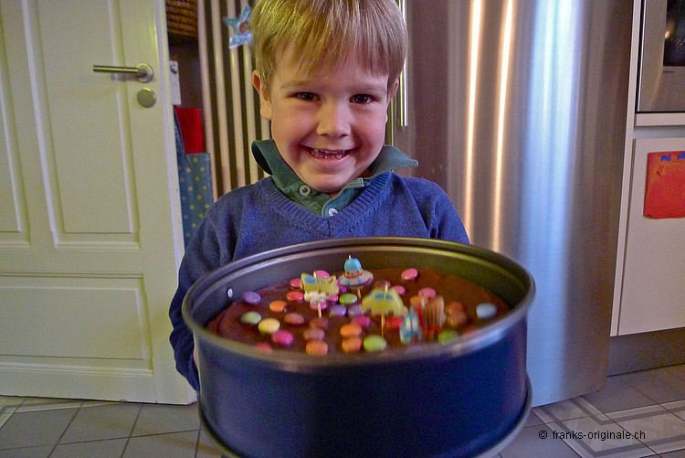 Lieber Frederik, Wir wünschen dir alles Liebe und Gute zu deinem 4. Geburtstag - und natürlich viele glückliche Stunden und grosse Zufriedenheit in deinem Wirken! Dein Geburtstag ist zwar schon ein paar Tage her ... dafür heute um so mehr! Wir hoffen, dass du noch viele schöne Erlebnisse mit deinen Brüdern und mit deinen Freunden haben wirst. Wir wünschen dir einen guten Appetit beim Essen des feinen Schoggi-Kuchens - geniesse jeden einzelnen Bissen. Wir denken fest an dich, freuen uns für dich und schmunzeln mit dir am heutigen Kuchen-Essen-Tag! Liebe Grüsse und einen festen Drücker von Mami & Papi