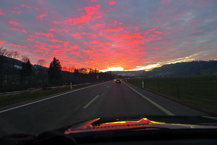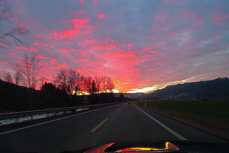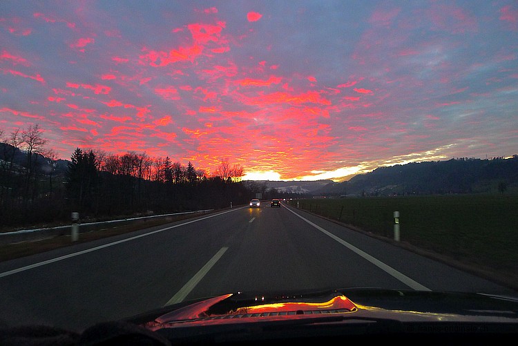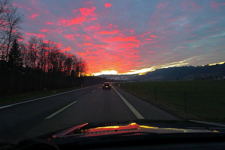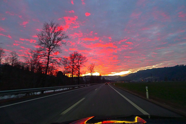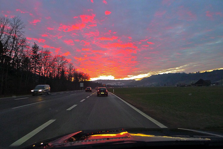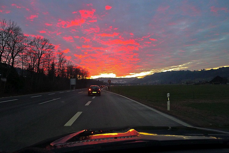 Die Fahrt ins schöne Hinterland ist an sich schon etwas Spezielles und Schönes - und dies auch nach Jahren noch! Und wenn sich noch ein so schönes Abendrot dazu gesellt, dann um so mehr! Es war wie ein loderndes Feuer, das von Petrus entfacht wurde und das auf diese Weise auf den Frühling aufmerksam machte. Die Aufnahmen haben wir auf der Höhe Blatten / Malters auf der Schnellstrasse geschossen. Wir möchten an dieser Stelle noch bemerken, dass die Bilder weder bearbeitet oder für den Betrachter optimiert wurden. Sie wiederspiegeln den Eindruck von gestern Abend bestens ... wir würden meinen, das Live-Erlebnis war noch intensiver !!! Geniessen Sie die Bilder zusammen mit uns und freuen Sie sich auf wärmere Temperaturen - der Frühling kommt nun definitiv! Judihuiiii ....