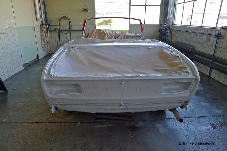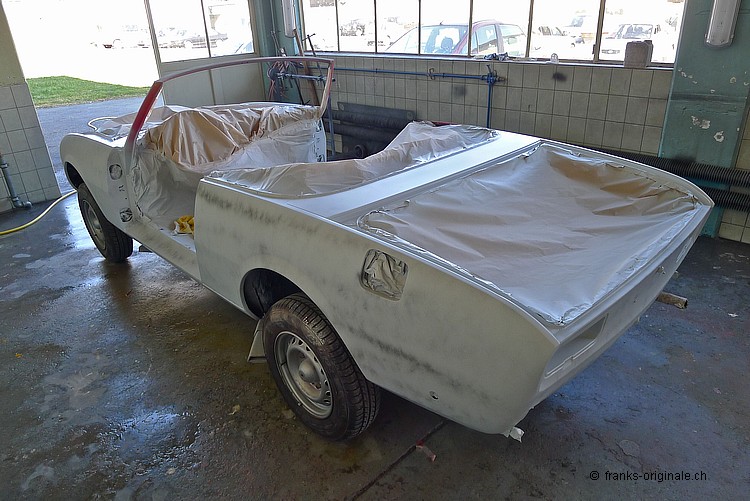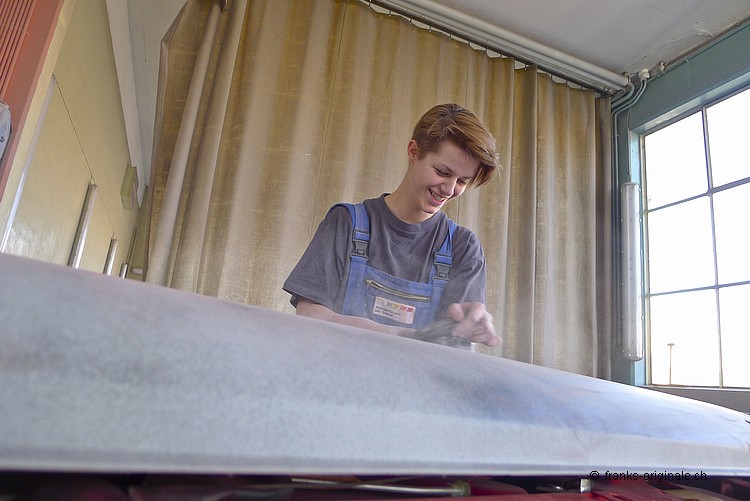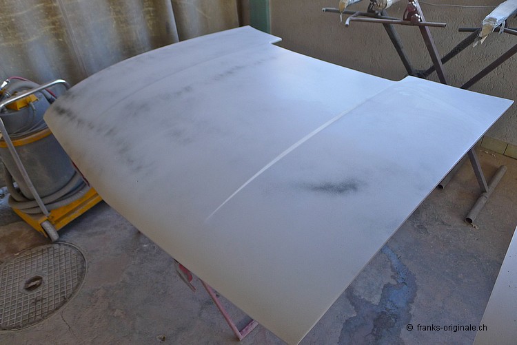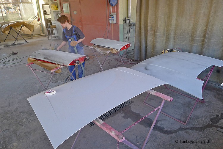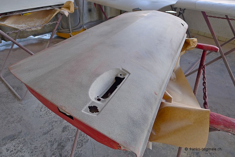 Schon bald kann mit der eigentlichen Malerarbeit begonnen werden. Die Vorbereitungsarbeiten konnten termingetreu realisiert werden - die Bilder sprechen ja eine deutliche Sprache. Nach dem Grundieren und Poliestern wurde nun der Füller aufgetragen. Dieser wird noch fein säuberlich abgeschliffen. Dieser Arbeitsgang ist der letzte vor den Malerarbeiten! Ab kommender Woche gehts dann an Reinemachen - die Malerei kann starten!