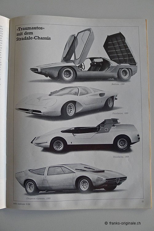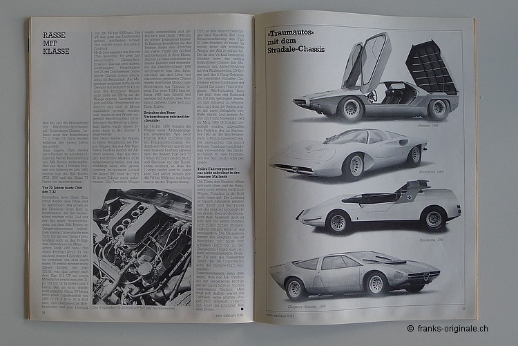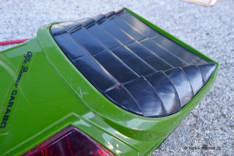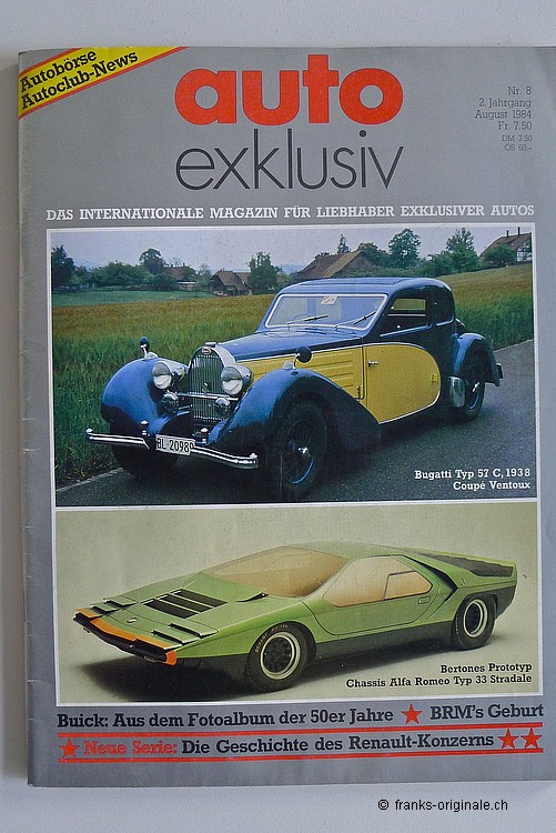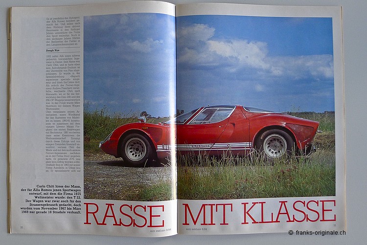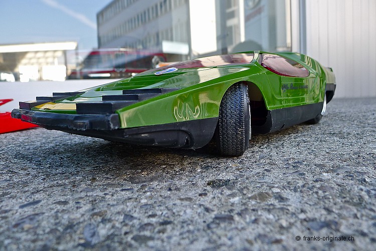 Die Überraschung zu Weihnachten war gelungen - ich habe ein ferngesteuertes Auto erhalten. Den 25. Dezember 1970 habe ich dann ausschliesslich damit verbracht, den Alfa Romeo Carabo in unserer Wohnung auszufahren und jede noch so abgelegene Ecke zu erkunden. Schön wars ... Vor wenigen Wochen war ich dann auf einem Flohmarkt und habe alte Zeitschriften durchstöbert. Dabei ist mir die Ausgabe von 'Auto exklusiv' aus dem Jahre 1984 (August-Ausgabe) sofort ins Auge gestochen. In dieser Ausgabe wird die Bertone-Studie des Alfa Romeo und weitere Exklusivitäten aus dieser Zeit beschrieben. Das kam mir natürlich sofort ganz bekannt und vertraut vor - schöne Erinnerungen waren sofort wieder präsent. Zufälle gibts manchmal ... fast unglaublich! Exakt diesen Carabo habe ich von meinen lieben Eltern zu Weihnachten 1970 erhalten. Ein Auto mit einem ca. 1.5 m langen Fernsteuerungs-Kabel ;-) Diese Steuerung hatte einen Vor- und einen Rückwärts-Gang. Zudem konnte via dem kleinen Lenkrad an der Steuerung nach links und rechts gefahren werden. Dieses Auto hatte ich gepflegt und gehegt - wie mein eigener Augapfel. Und niemand durft damit spielen - ausser ich war dabei. Und das auch nur in äussersten Ausnahmefällen. Dieses ferngesteuerte Auto war das super Verschärfteste, was dann zu mal an ferngesteuerten Autos überhaupt zu haben war! Einfach unglaublich - und ich hatte eines von diesen schönen Exemplaren! Dieser Bertone-Alfa schmückt noch heute meine Vitrine und erinnert mich von Zeit zu Zeit an die vielen schönen Erlebnisse von früher. Und genau so geht es vermutlich vielen anderen Leuten mit ihren richtigen, alten Fahrzeugen. Es sind die schönen Erinnerungen und die einzigartigen Erlebnisse, die uns immer wieder zu diesen Präziosen hinziehen und uns in Versuchung bringen .... Geniessen Sie die schönen Bilder - und ein Besuch bei FRANKS wird helfen ;-)