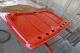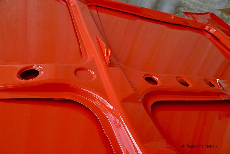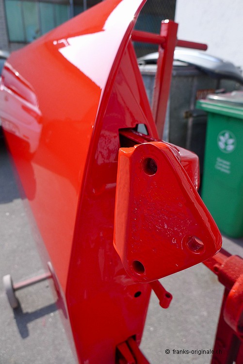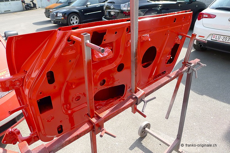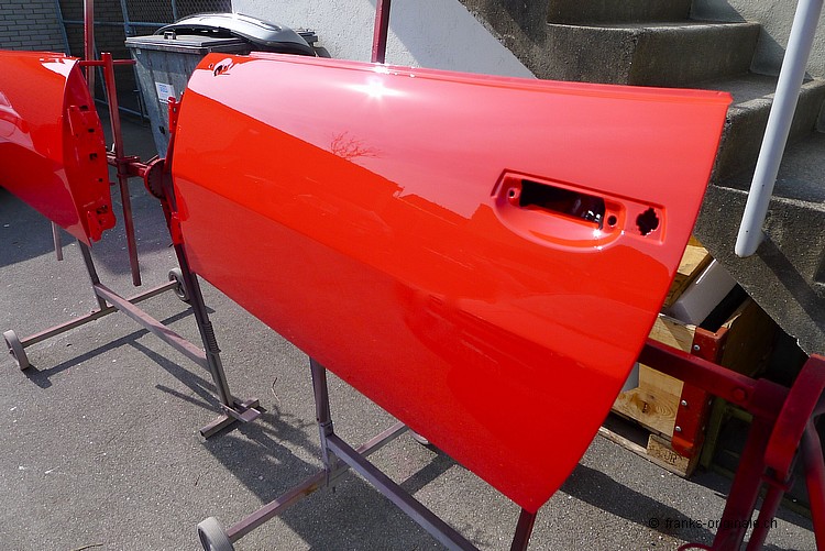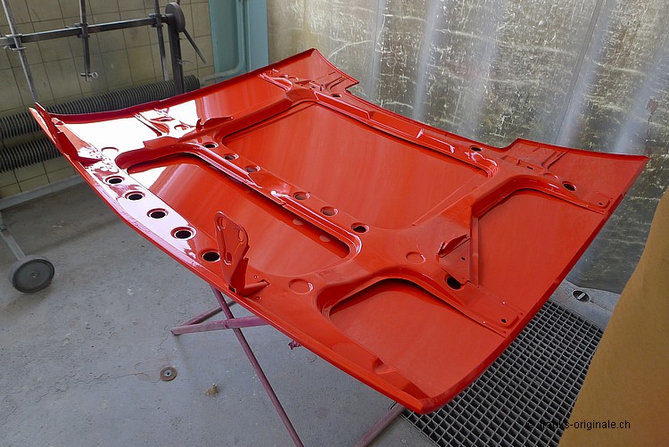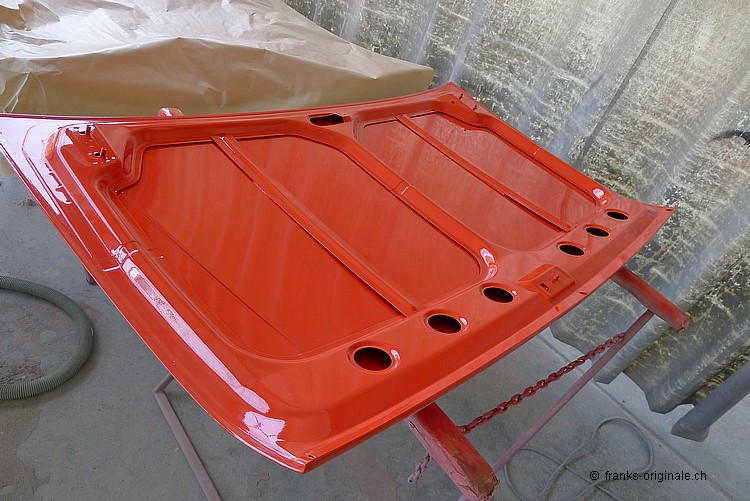 Die ersten Anbauteile wie Motorhaube, Kofferraumdeckel, Tankdeckel und die beiden Türen wurden bereits lackiert und sind fertig. Die Karrosserie wird am kommenden Samstag dann ebenfalls noch lackiert ... wir freuen uns und sind gespannt auf das Endresultat! An der Karrosserie wird das Vorhaben der Restauration dann so richtig sichtbar ... das wird ganz bestimmt wieder ein ganz grosses WOW! Toi, toi, toi ... wir freuen uns!