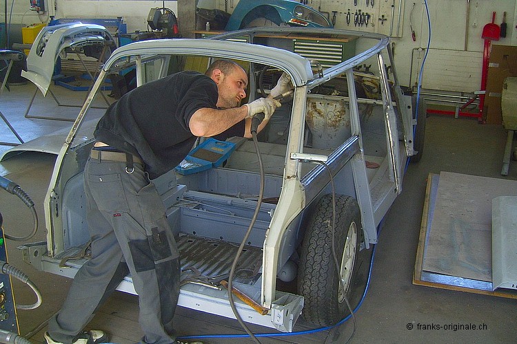 Was die Fotos deutlich machen und an den Tag bringen - viel Rost ist an der DS Break auszumachen. Dies hat die genaue Analyse im Vorfeld gezeigt. Nun werden sämtliche Arbeiten an die Hand genommen und sorgfältig Schritt für Schritt ausgeführt. So werden unter anderem die beiden Seitenteile am Heckbereich, die Schweller beim Einstieg an beiden Seiten und das Bodenblech im Fahrerbereich herausgeschnitten und mit Reparatur-Blechen ersetzt. Diese Arbeiten sind sehr aufwendig und wie die Fotos zeigen dringen notwendig. Diese müssen sehr sorgfältig ausgeführt werden um eine nachhaltige Werterhaltung der DS Break zu garantieren. Die Arbeiten an der DS-Kombi laufen nach wie vor auf Plan. Die Spezialisten machen einen sauberen und exakten Job. So, wie wir uns das vorstellen. Und so freuen wir uns auf weitere Bilder der weitere Arbeitsresultate ....