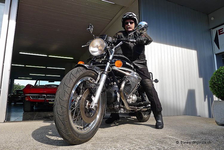 Mit 24 Jahren kaufte ich im Jahre 1984 mit grossem Stolz meine erste Moto Guzzi - eine V7 850 GT California mit Jahrgang 1973. Fast 20 Jahre begleitete mich dieses Motorrad auf Touren und Reisen und natürlich auch im Alltag. Nachdem ich meine Familie gegründet hatte und trotzdem nicht auf das Motorradfahren verzichten wollte, schnallte ich ohne gross zu überlegen einen Squire Seitenwagen mit 1 1/2 Plätzen an meine Guzzi. Auch damit hatten wir natürlich viel Spass - vor allem die Kinder! Neue Prioritäten - das Geschäft hatte Vorrang Dann musste ich aus geschäftlichen Gründen das Gespann gegen etwas Kleingeld tauschen. Prioritäten waren zu setzen. Das viel mir jedoch sehr schwer und Wehmut machte sich schon bald bemerkbar. Seither sind einige Jahre vergangen und mein Wunsch, wieder Motorrad zu fahren, wurde wieder stärker und stärker. Schliesslich schaute ich mich nach Occasionen um - und wen wundert's - natürlich nach einer Guzzi! Bei FRANKS war eine Guzzi zu haben Schliesslich fand ich die Homepage von FRANKS Originale in Kriens. Und was sah ich da? Eine wunderschöne Moto Guzzi 850-T mit Jahrgang 1974. Diese wurde in schönen Bildern gezeigt - das Virus hatte mich wieder! Da war es auch schon wieder um mich geschehen - ich vereinbarte sofort einen Besichtigungstermin mit Frank. Als ich diese schöne Guzzi live vor mir sah und auch probefahren durfte, wusste ich sofort, dass ich diese Guzzi haben will resp. haben musste. Ein schneller Entscheid - alles war klar Wir haben das Vertragliche geregelt - alles hat wunderbar geklappt! Frank von FRANKS Originale betreibt sein Geschäft wirklich sehr engagiert und mit grosser Freude. Auch die Auslieferung hatte reibungslos geklappt. Alle vereinbarten Punkte aus dem Vertrag (Servicearbeiten & Rückspiegel) wurden anstandslos erledigt. Ich bin sehr froh, dass ich FRANKS Homepage und somit meine Moto Guzzi bei FRANKS entdeckt habe. Das schöne Motorrad befindet sich wirklich in einem schönen und einwandfreien Zustand - sowohl technisch wie auch optisch. Ich bin sehr happy - das Fahren mit dem Italienischen Klassiker macht grosse Freude. Es fühlt sich so an, wie ich das aus meiner Jugendzeit noch kannte. Ich freue mich sehr und bin stolz, wieder Besitzer einer klassischen Guzzi zu sein. 16. Mai 2012, Patrick Boesch