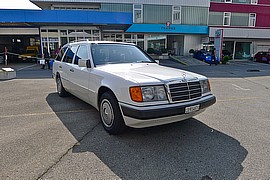 Wir präsentieren Ihnen einen wunder schönen Alltags-Klassiker von Mercedes Benz - perfekt erhalten, sehr sauber und gepflegt und mit lückenloser Service-History! Die Vorbesitzerin hatte minutiös Buch geführt und peniebel genau immer alle notwendigen Services ausgeführt. Zwar hat unser Kombi-Klassiker schon einiges auf dem (Tacho-) Puckel. 270'000 km sind jedoch nichts für diesen Arbeiter- und Lifestyle-Kombi. Im Frühjahr 2012 (März) wurde zudem eine neue MFK-Prüfung mit erfolg bestanden. Unser Merces Benz 230 TE ist mit einem 2.3 Liter auzsgestattet; dieser leistet 136 PS. Das ist zwar nicht überaus viel - aber immer noch genug um zügig voran zu kommen und einiges an Gewicht zu laden. Zusätzlich verfügt unser Kombi über eine Anhängevorrichtung, die 1'440 kg Zuglast beinhaltet. So können ungeniert auch Anhänger oder schöne klassische Wohnwagen gezogen werden ;-) Etwas zur Geschichte Die Kombimodelle verfügten alle über die Bezeichnung TE (Touristik / Transport). Unser 124er Kombi-Modell war ein Lifestyle-Kombi, der sich einzig im Kombi-Aufbau von den Limousinen unterschied. Motor, Ausstattung und Zubehör waren bei allen Modellen gleich. Wir bieten Ihnen hier also einen sehr sauberen und auch preiswerten Mercedes-Kombi an. Ein Fahrzeug, das wir selber regelmässig fahren, das frisch vorgeführt wurde und das wir bestens empfehlen können. Es bereitet sehr viel Fahrfreude und macht Spass. Greifen Sie zu - ein solch attraktiver Kombi bleibt nicht lange im Angebot!
