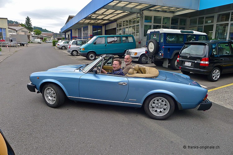 Heute war grosser Auslieferungs-Tag! Für den neuen Besitzer geht ein lang ersehnter Wunsch in Erfüllung. Lange musste er auf seinen Spider warten ... heute war es nun endlich so weit! Wir bedanken uns beim neuen Besitzer für den Kauf des Spiders und für das Vertrauen in FRANKS. Es freut uns sehr, dass der Fiat Spider in die richtigen Hände gekommen ist. Wir finden, Sie passen sehr gut zu diesem Italienischen Klassiker. Gute Fahrt und viel Vergnügen auf den gemeinsamen Ausfahrten mit den 124er-Kollegen. Liebe Grüsse aus Kriens Frank Lutz PS - Hier die Adresse des Fiat 124 Clubs der Schweiz: www.124spiderclub.ch