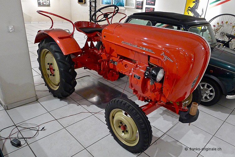 Adolf Hitler regte im Jahre 1937 die Produktion eines Volkstraktors an - parallel zur Produktion des bereits in Auftrag gegebenen Volkswagens, dem später bekannten VW Käfer. Nach der Entwicklung der ersten Traktor-Prototypen durch Porsche Stuttgart, wurde in den 1950er bis anfangs der 1960er Jahren die Fabrikation einer ganzen Porsche Traktoren-Familie hergestellt. Angefangen vom Ein- bis zum grossen und bulligen Vierzylinder waren verschiedene Modelle erhältlich. Unser Junior - ein Schweizer Fahrzeug So auch unser neuster Neuzugang - einen Porsche Diesel Traktor Junior 108K aus dem Jahre 1960. Ein seltenes Original - einen Einzylinder mit 822 ccm Hubraum und 14 PS Leistung. Kennwerte, die zwar bescheiden tönen aber für diese Zeit trotz allem ausreichend waren. Diese Motorenleistung und einem Gesamtgewicht von 875 kg reichten für eine Spitzengeschwindigkeit von 20 km/h. Unser Junior 108K wurde erstmals in der Schweiz in den Verkehr gesetzt. Die Firma Ächerli AG aus Reiden (Kt. Luzern) lieferte im Jahre 1960 diesen Traktor-Klassiker dem Erstbesitzer aus. Ein weitgehend originales Fahrzeug, das vor wenigen Jahren koplett überarbeitet wurde. Geniessen Sie die schönen Bilder - ein Porsche Traktor ist nicht alle Tage zu sehen. Der Junior sollte kommende Woche bei uns eintreffen! Und dann werden wir unsere aller erste Ausfahrt damit machen ....