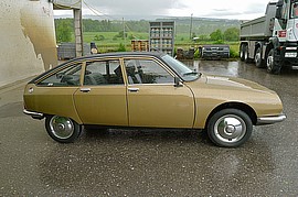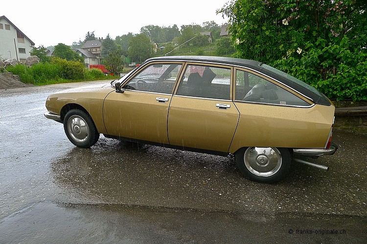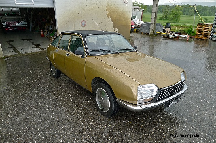 Wieder einmal können wir von einem tollen Fahrzeug berichten. Eine top originale Citroen GS in goldener Farbe! Trotz des regnerischen Wetters vermag dieser tolle Klassiker voll und ganz zu überzeugen. Die GS Spezial ist komplett ohne Rost, das schwarze Interieur ist bestens gepflegt und ohne Mängel, die gesamte Historie ist dokumentiert (Servicebuch, Abgasdokument, Manual, etc.) Es wurde sogar ein separates Fahrtenbüchlein geführt. Sämtliche Tankfüllungen, Oelwechsel und speziellen Geschehnisse wurden darin vermerkt. Und dies seit Beginn ... Aus unserer Sicht ist diese GS ein einmaliger Franzosen-Klassiker, der in seiner natürlichen Ausstrahlung und etwas Patina zu 100 % überzeugt. Und das Schöne an der Geschichte - diese GS kommt schon bald zu FRANKS. Wir werden dieser GS eine komplette Aufbereitung gönnen diese in unserem Showroom präsentieren. Die MFK-Veteranen-Prüfung wurde im Dezember 2011 letztmals gemacht - bis 2018 ist somit keine weitere Prüfung anstehend. Etwas zur Geschichte der GS (Grande Série) Die Modellreihe der Citroen GS wurden von 1970 bis 1986 in einer Gesamtauflage von ca. 2.5 Mio. Stück gebaut. Eigentlich ein Massenprodukt - und trotzdem - heute aber mit Sicherheit ein selten anzutreffender Klassiker, der für Aufsehen erregt. Die GS ist ein Fronttriebler und wird von einem 4 Zylinder Boxer-Motor mit 1'054 ccm und 54 PS Leistung angetrieben wird. Das Hydrauliksystem (Hydropneumatik) wurde vom grossen Schwertermodell, der Citroen DS, übernommen. Auf eine Servolenkung wurde bewusst verzichtet. Warten Sie gespannt auf diesen schönen und überzeugenden Klassiker. Sie dürfen sich freuen - ein Klassiker, der bis ins letzte Detail überzeugt.