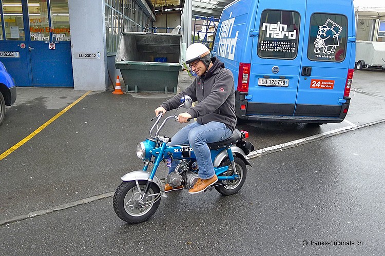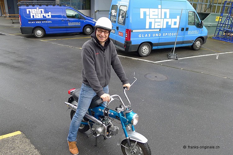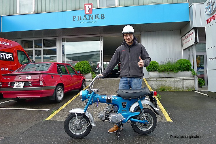 Herzliche Gratulation dem neuen Besitzer - die DAX sieht wirklich super schön aus! Passend dazu mit dem neuen Römer-Helm aus der Zeit. Wir bedanken uns herzlich für den Kauf der 1973er DAX und für das Vertrauen in FRANKS. Wir wünschen zudem eine gute und unfallfreie Fahrt mit dem Japan-Klassiker. Bis bald einmal wieder - sehr gerne sogar - liebe Grüsse aus Kriens. FRANKS Originale - Frank Lutz