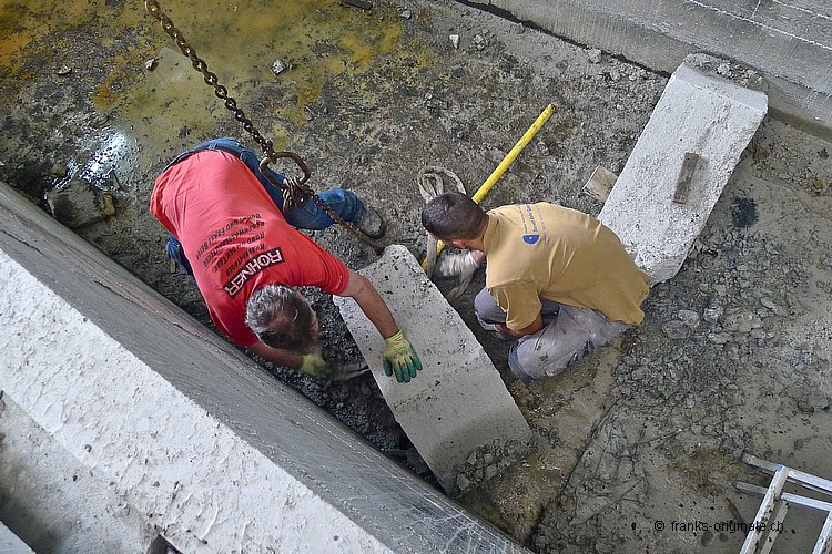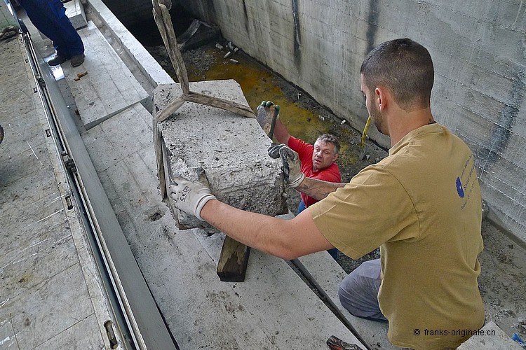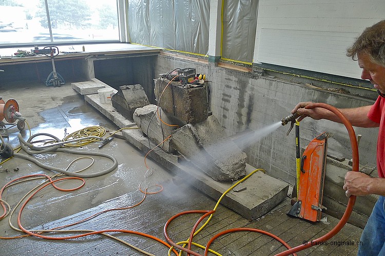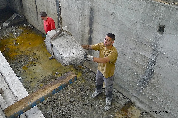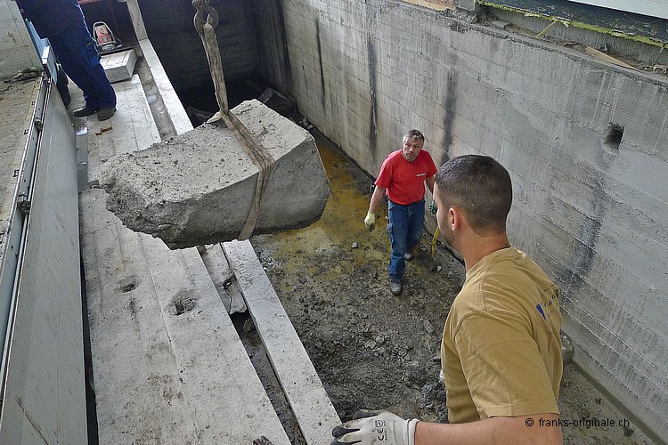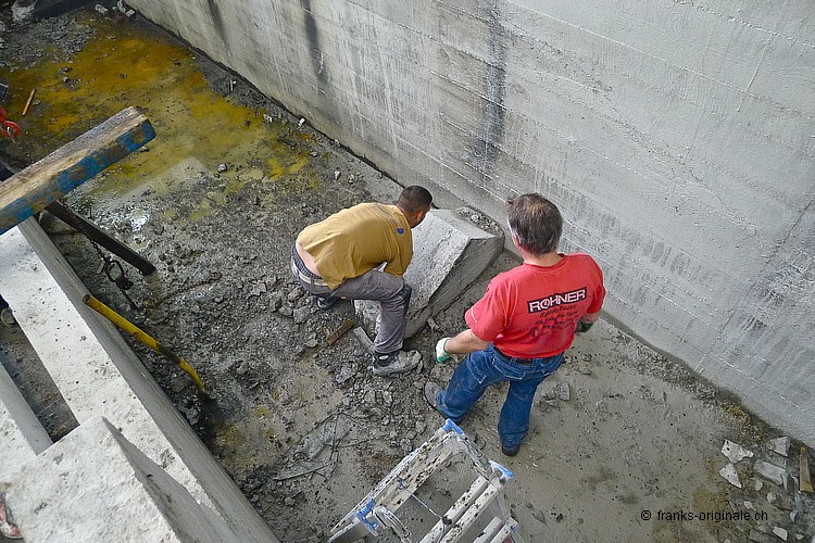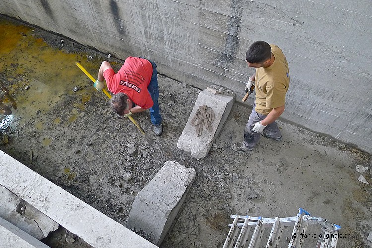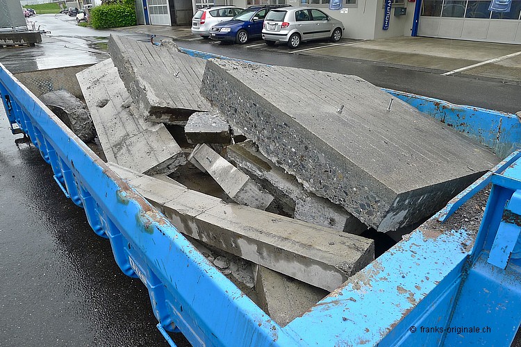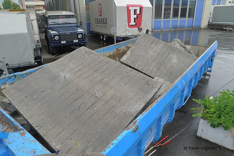 Es waren eindrückliche zwei Wochen. Die verschiedenen Handwerker gingen mit vollem Elan und gutem Handwerk an die Arbeit. Alle Abbrucharbeiten konnten planmässig an die Hand genommen und umgesetzt werden. Zuerst wurde der alte Holzboden und das Metalluntergestell entsorgt. Danach wurden der alte Oeltank auseinander getrennt und entsorgt und die Betonwanne des Oeltanks in kleine Teile zerlegt. Die Bilder zeigen eindrücklich, welche Massen an Altmaterial zu entsorgen waren. Tonne für Tonne an altem Material wurde so auf die Deponie gekarrt. Die nächsten Arbeiten sind nun klar - ein neuer Boden solle es sein. Mit Eisenarmierungen gestärkt, dazu noch eine Bodenheizung und Stromanschlüsse, wo diese notwendig sind. Alles ist geplant - die kommende Woche wird uns wieder einen Schritt näher an unsere Werkstatt bringen ... Wir freuen uns! Die ganze Umbau-Geschichte können Sie auf unserer Homepage mitverfolgen - unter REFERENZEN / Franks Werkstatt sehen Sie alle Blogs dazu!