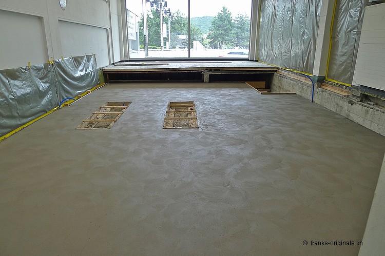 Nun ist unser neuer Werkstatt-Boden bald fertig. Die Oberfläche wurde talochiert - jetzt muss die neue Betonplatte noch austrocknen. In ca. zwei Wochen sollte der Aushärtungs- und Trocknungs-Vorgang abgeschlossen sein. Schreiner und Elektriker als Nächste! Danach geht es dann mit dem Innenausbau weiter. Der Schreiner und der Elektriker werden die Nächsten sein und unsere Arbeitsumgebung gestalten. Dazu gehören auch zwei neue Treppen, eine neue Werkbank und natürlich Stromanschlüsse und viel Licht! Zu guter Letzt werden unsere Arbeitsgeräte geliefert und wo notwendig dann auch montiert (z.B. Autolift). Will heissen, dass wir uns auf der Zielgeraden befinden ... Freude herrscht! Die ganze Umbau-Geschichte können Sie auf unserer Homepage mitverfolgen - unter REFERENZEN / Franks Werkstatt sehen Sie alle Blogs dazu!