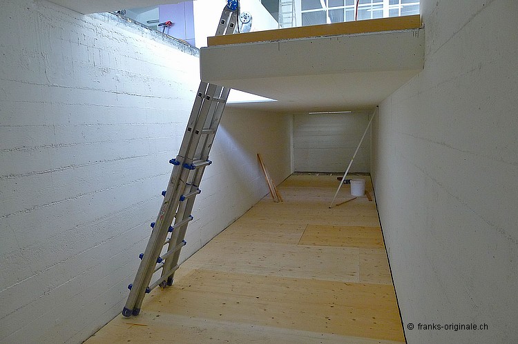 Unser Schreiner hat es wieder einmal gerichtet - in weniger als einem Tag wurden aus den vielen Brettern und Schalttafeln (ehem. Staub-Trennwand) ein neuer Boden im ehemaligen Tankraum. Alles sieht sehr schön und perfekt verlegt aus! Eine saubere Sache Und wenn dann einmal die beiden Treppen montiert sind, bekommt dieser Raum dann auch seine entgültige Bestimmung. Denn im UG werden zukünftig Kleinteile und Ersatzmaterialien gelager. Ein sehr willkommener Lagerraum. Denn unsere Ausstellung ist nicht überdimensioniert. Stauraum ist also immer gesuchte Ware ;-) Eiin grosses Dankeschön an die Adresse der Firma Manetsch in Littau / Luzern. Gut gemacht ...