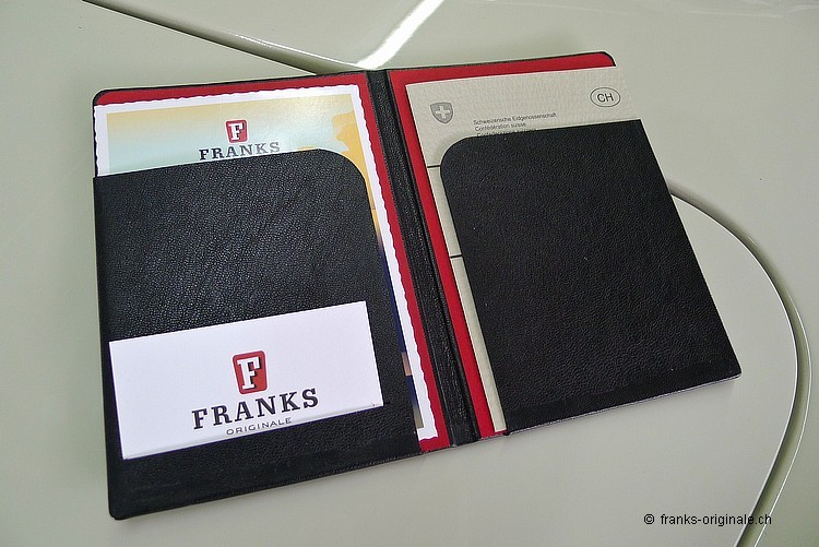 Mit Stolz präsentieren wir Ihnen unsere soeben fertig gestellten Ausweis-Mappen - von Hand gefertigt und mit dem Logo von FRANKS geprägt. Mit bestem Leder produziert und mit grösster Sorgfallt zu einem wunderschönen Produkt verarbeitet. Jeder Kunden, der bei FRANKS einen Klassiker erwirbt, erhält eine solche authentische und der Zeit nachempfundene Ausweismappe als Geschenk. Für alle anderen ist unsere Ausweis-Mappe natürlich auch erhältlich. Für CHF 135.- können Sie eine unserer Ausweis-Mappen erwerben. Schreiben Sie uns einfach eine Mail für Ihre Bestellung. Viel Spass und Freude beim Surfen ...