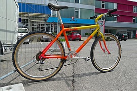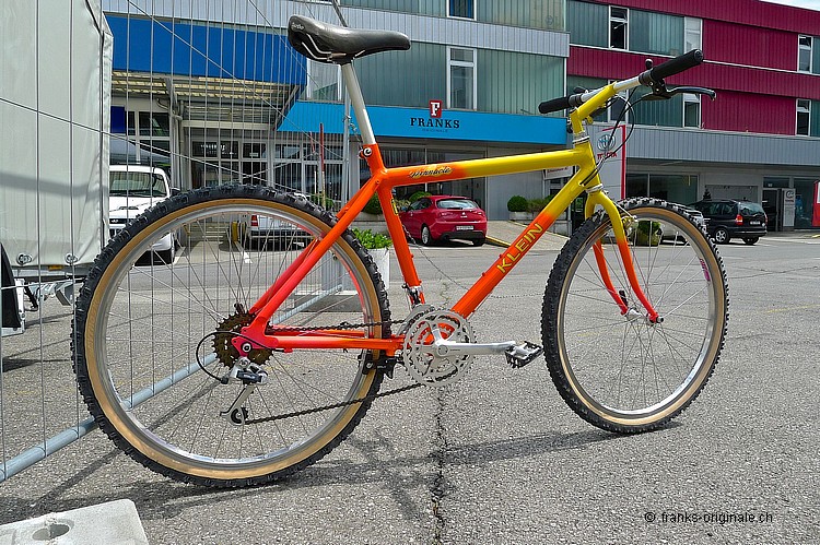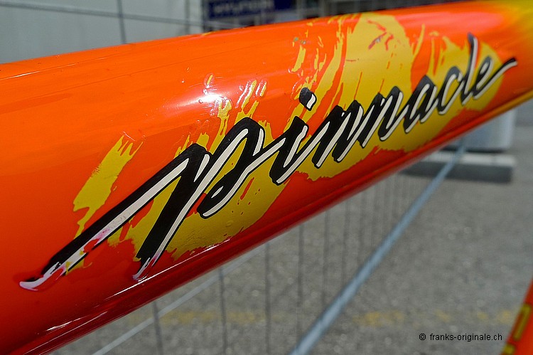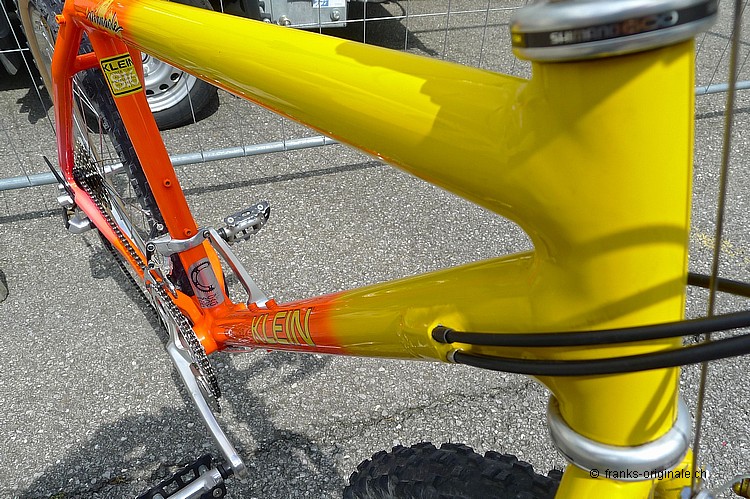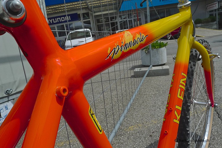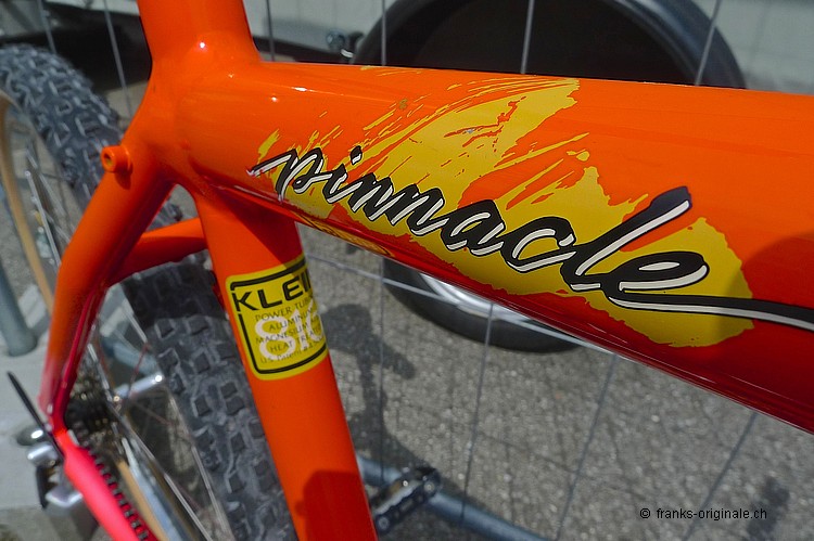 Dieses überzeugende Mountain-Bike aus dem Hause KLEIN war das absolute Top-Bike, das im Jahre 1987 zu haben war. Ein Aluminium-Bike der Superlative - das Pinnacle eben! Technologie aus der Flugzeugindustrie - verarbeitet zu maximaler Steiffigkeit. Etwas oversized und trotzdem sehr leicht im Gesamtgewicht. Unser Pinnacle hat die lange Zeit seines Bestehens bestens überstanden. Die UV-empfindliche und fluoreszierende Backfire-Lackierung hat noch ihre volle Leuchtkraft. Es sieht aus, wie direkt aus dem Laden getragen. So auch die damalige top Shimano-Schaltgruppe XT, die dank der innovativen Technik konkurrenzlos in ihrer Funktion war. Dieses Bike gehörte zu den Allerbesten, welche im Jahre 1987 überhaupt auf dem Markt zu kaufen war; wohlgemerkt für ein Vermögen und somit für die meisten Fans und Liebhaber dieser Zeit fast unbezahlbar. Mehr Informationen und mehr Fotos auf unserer Fan-Seite unter: oldschoolracing.ch Gary KLEIN - Firmengründer und Konstrukteur Gary Klein startete Mitte der 70er Jahre ein Hochschulprojekt und begann mit zwei Freunden Rennrad-Rahmen aus Aluminium herzustellen. 1985 baute er das erste KLEIN Mountainbike - das Mountainklein. Der nächste grosse Meilenstein war das 1990er Attitude, das er 1991 mit dem boronverstärkten Adroit nochmals toppte. 1996 verkaufte er das Unternehmen KLEIN an den US-Konzern Trek. Und ab diesem Jahr sind für die wirklichen Liebhaber solcher Bikes KLEIN-Bikes keine echten KLEIN-Bikes mehr ... sondern eben TREK-KLEINs ;-) ... Massenware mit dem Glamour der vergangenen Jahre!