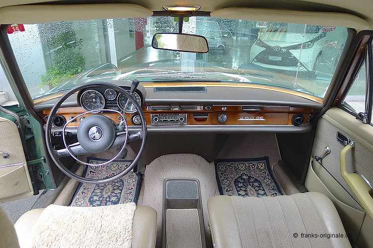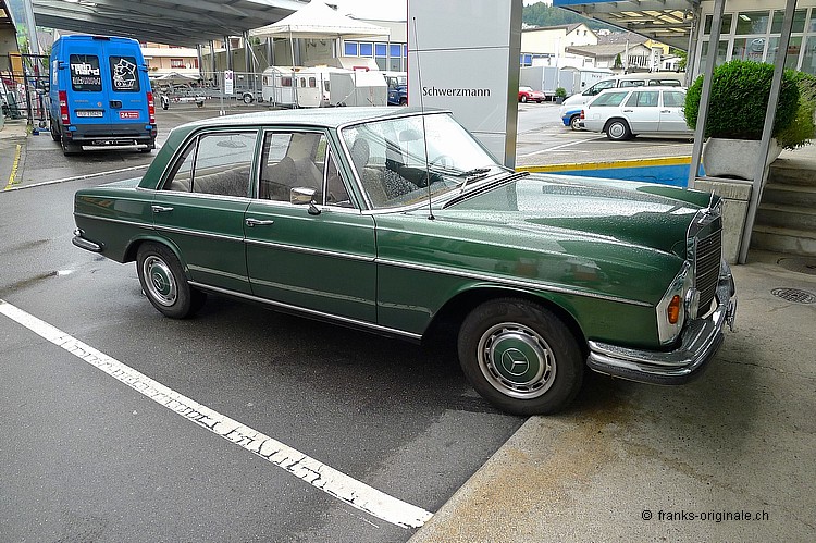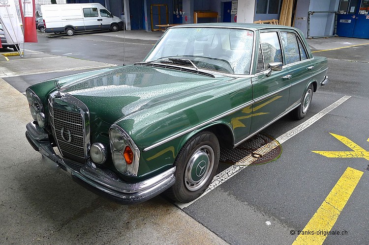 Schon bald wird bei uns eine weitere dieser edlen Mercedes Benz Limousinen stehen. Nämlich ein 280er SE - ein Einspritzmodell. Von der ersten Besichtigung und Prüfung können wir nur Gutes berichten. Das Fahrzeug macht einen guten Gesamteindruck. Der Lack ist schön und hat ein paar wenige Gebrauchtspuhren. Technisch ist dieser Klassiker solide. Denn dieser Benz wurde sorgfälltig gewartet und unterhalten. Die Ausstrahlung dieser schönen Limousine mit dem üppigen Chrom in Kombination mit der seltenen Farbgebung Grün métaliser ist unserer Meinung nach sehr chic und passt! Freuen Sie sich auf einen tollen Klassiker - wir berichten gerne wieder, wenn dieser 108er bei uns eingetroffen ist. Bis bald. Etwas zur Geschichte Die W108er Serie wurde als Oberklasse beschrieben und sollte die bis anhin bekannt Heckflosse (W111) ablösen. Während den Jahren 1965 bis 1972 wurden die 108er produziert - 3 Modell waren im Angebot: Der 250 S, 250 SE und 300 S. Vom 280 SE wurden gesamthaft ca. 91'000 Stk. produziert. Die Produktion des Modells 250 SE endete dann mit Beginn des Jahres 1968. Als Nachfolger wurden im Januar die Typen 280 S und 280 SE vorgestellt. Diese unterschieden sich nur in der Motorisierung und in Ausstattungsdetails von ihren Vorgängern. Der neu entwickelte 2,8-Liter-Sechszylindermotor leistet in der Vergaserversion (S) 103 kW (140 PS) und mit Benzineinspritzung (SE) 118 kW (160 PS). Die Produktion des Modells 250 S wurde Ende 1969 eingestellt, während der Typ 280 SE noch bis 1972 weitergebaut wurde.