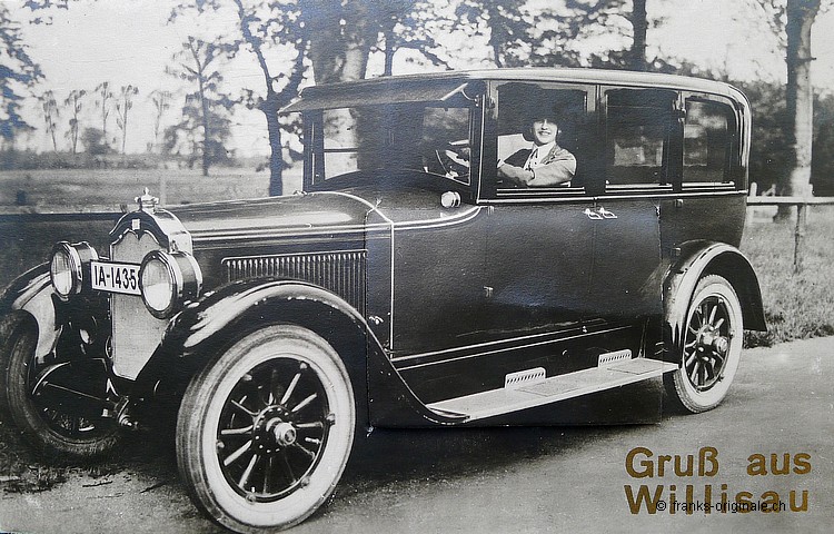 Für einmal können wir ihnen ein ganz spezielles Karten-Original zeigen. Ein Auto-Gruss-Karte mit besten Grüssen aus Willisau. Frida schrieb der lieben Hedy schöne Feriengrüsse und eine gute Fahrt! Etwas Seltenes zu dieser Zeit. Denn ein Auto konnte sich nicht jedermann leisten! Die Autos - eine Seltenheit in den 20er Jahren Die Kombination von Auto und Grüssen aus Willisau finden wir super schön gelungen. Einerseits, da es die Anfänge der Autogeschichte dokumentiert und zweitens, weil die Grüsse aus der Stadt Willisau kommen. Einem wunderbaren Ort im schönen Luzerner Hinterland - aus meiner Wohngemeinde und heutigen Heimat! Verschiedene Sujets aus Willisau Das Spezielle an dieser Karte ist zudem das Klapp-Fenster, aus diesem eine Bilderstrecke heraus geklappt werden kann. Diese Minibildern zeigen die verschiedenen Sehenswürdigkeiten der schönen Ringli-Stadt. Unter anderem ist auch unser schönes Rathaus, das Städtli selber und die ganze Landschaft zu sehen. Des weiteren ist auch ein fantastisch schönes Bild von der Bahnhofstrasse zu sehen. Auf der linken Seite auf diesem Bild steht ganz prominent das Jungendstil-Haus Bahnhofstrasse 12 - unser Wohnhaus! Die Karte ist bei uns in Kriens zu sehen - dazu gibt es einen Kaffee. Wir freuen uns auf ihren Besuch - in diesem Sinnen wünschen wir Grüsse aus Willisau!
