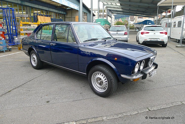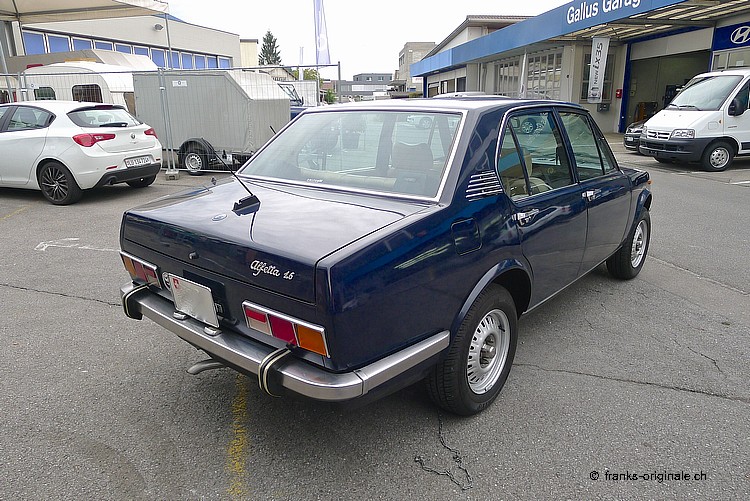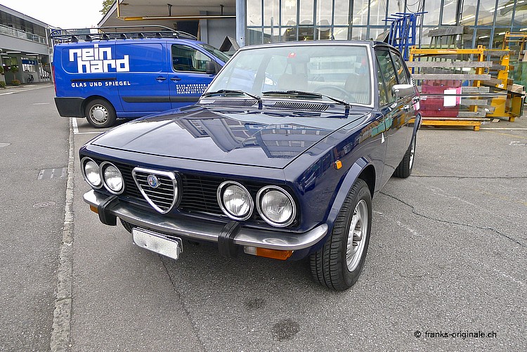 Das Fahrzeug steht seit kurzem bei FRANKS - diesen schönen Klassiker konnten wir in dieser Woche zu uns nehmen. Die Alfetta hält, was sie versprochen hat! Technisch und optisch ist der Alfa-Klassiker in einem besonders guten und originalen Zustand. Unverbastelt und noch immer im Originalkleid! Saubere Geschichte - gut dokumentiert Die Alfetta hatte noch nicht viele Vorbesitzer. Zudem sind alle wünschenswerten Dokumente vorhanden: Servicebuch, Bedienungsanleitung, Rechnungsbelege, Garantieschein, etc. Etwas, dass man bei einem Klassiker nicht alle Tag antrifft. Wir sind der Meinung, dass es sich bei dieser Alfetta um ein ganz besonderes Fahrzeug handelt. Etwas, dass man fast nicht mehr auf der Strasse sieht - in diesem Zustand schon gar nicht. Geniessen Sie die Bilder ... ode besuchen Sie uns im Showroom in Kriens! Etwas zur Geschichte Die Alfa Rome Alfetta gehört zu den gehobeneren Mittelklass-Limousinen und wurde von 1972 bis 1984 produziert. Als Nachfolgerin der Berlinetta 1750 / 2000 bekam die Alfetta tolle Kritiken von der internationalen Presse - die Akzeptanz bei der Kundschaft war ebenfalls grossartig. Von Bertone gezeichnet, findet die Alfetta noch heute eine sehr grosse Fangemeinde und entsprechend auch breites Aufsehen auf den Strassen. Sie ist mittlerweilen ein gerngesehener Alfa-Klassiker! Heute sind die Alfettas rar - entsprechend sind gute Fahrzeuge sehr gesucht.