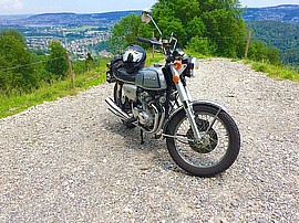 Vergangenes Wochenende war wieder einmal herrliches Töff-Wetter - die perfekte Einladung um seinen Motorrad-Klassiker auszufahren! Einer unserer Kunden erkannt dies und machte mit seiner HONDA CB 350 Four eine schöne Tour durch die Umgebung von Zürich. Die Freude war natürlich riesig. Die freundliche Mail-Nachricht zur Ausfahrt, die wir darauf hin erhalten haben, möchten wir Ihnen gerne in Form eines Kunden-Feedbacks weiterleiten! Wir bedanken uns ganz herzlich für diesen Reisebericht und hoffen, dass die Freude für das Töff-Fahren noch lange anhält. Wir würden uns sehr freuen, dich bald wieder einmal bei uns in Kriens sehen zu können. Dann evtl. auch mit der schönen HONDA! Übrigens - hier gehts zur Fahrzeugübergabe, welche wir im 2012 herzlich tun durften! Liebe Grüsse, Frank - - - Salü Frank Ich weiss wie gerne Du Deine Klassiker geniesst und darum dachte ich, ich berichte Dir von meiner heutigen Ausfahrt. Nachdem ich während der letzten 2 Jahre meine HONDA CB 350 Four eher zwangsmässig, kurz bewegt habe, ich hatte keine Zeit / Lust wegen Arbeit, Weiterbildung, Wetter und meinen anderen Fahrzeugen, hatte ich heute wieder einmal die Zeit und Lust, eine kleine, genüssliche Ausfahrt mit der meiner schönen HONDA CB 350 Four zu unternehmen. Sie führte mich, bei gutem Wetter und wenig Verkehr, von mir zu Hause via Schlieremer Wald, Buchenegg- und Albis-Pass, einmal rund um den Türlersee und wieder zurück. Um Standschäden zu vermeiden habe ich nach der letzten Zwangsfahrt die Batterie gewartet und die Zündkerzen gereinigt. Meine 350er Four lief nicht ganz sauber, da wohl wegen der zu schwachen Batterie die Zündung nicht optimal war – nun läuft sie wieder wie am 1. Tag der Auslieferung. Somit war es mir eine wahre Freude, wieder einmal eine längere, entspannte Tour mit der HONDA zu unternehmen. Ich bin froh, dass ich dieses schöne Motorrad mein Eigen nennen darf. Es ist einfach erholsam und ein wahrer Genuss in der heutigen hektischen Welt, dieses schöne, kleine Fahrzeug aus einer längst vergangenen Zeit zu bewegen bzw. bewegen zu dürfen. Somit war es mir eine wahre Freude, wieder einmal eine längere und entspannte Tour mit der HONDA zu unternehmen. Ich hoffe ich konnte Dir mit diesem kleinen Bericht einen Teil meiner Freude weitergeben. Ich wünsche Dir noch ein schönes Wochenende. Liebe Grüsse, M.F.