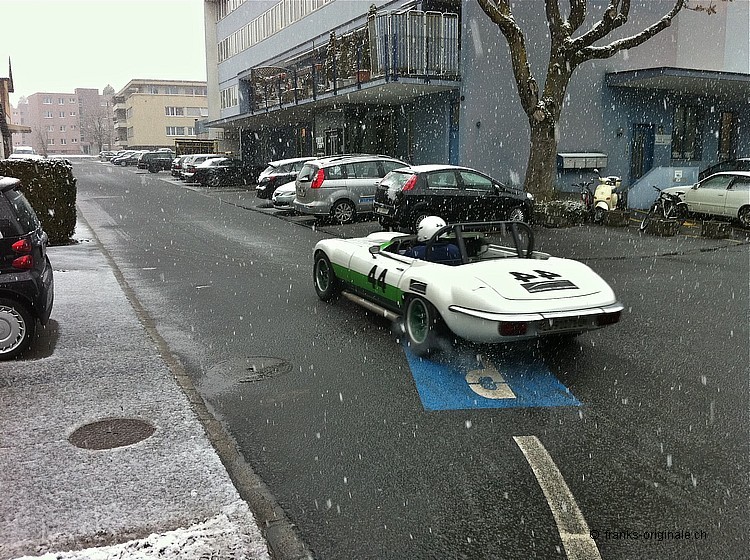 Georg Dönni, Inhaber der GB Classic Cars Roggliswil, war heute ganz überraschend mit seinem offenen Jaguar E-Type zu Gast bei FRANKS AG. Herzlich willkommen - dein Besuch hat uns sehr geehrt! Der soeben fertig gestellte Jaguar E-Type wurde heute zum dritten und letzten Mal Probe gefahren. Alles läuft bestens und passt für die lange Fahrt nach England. Gut vorbereitet und warm angezogen - ganz nach dem Motto: Es gibt kein schlechtes Wetter, sondern nur schlechte Kleider! Anlässlich des 50 Jahre Jubiläums der Jaguar E-Types wird Georg Dönni morgen Freitag mit seinem offenen E-Type nach England überfahren. Die Retourfahrt wird dann zusammen mit 49 anderen E-Types erfolgen. Total ca. 3´000 km an Fahrtstrecke mit dem Ziel Genf / Automobilsalon! Mehr Informationen über Georg Dönni und Jaguar-Klassiker finden Sie unter folgendem Linke: www.jaguarclassic.ch Lieber Georg - wir drücken dir die Daumen für dein Vorhaben, wünschen viel Spass und eine schöne und unfallfreie Fahrt! Bis bald einmal wieder. Liebe Grüsse aus Kriens. Frank