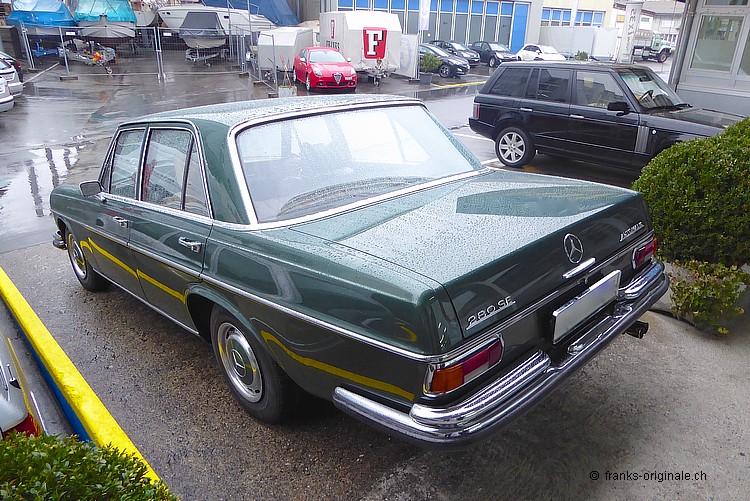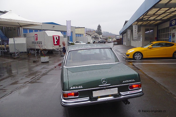 Der schöne 280er SE Mercedes-Klassiker fährt seit heute wieder auf unseren Strassen umher. Ein bekennender Liebhaber von klassischen Fahrzeugen und Oldtimer-Enthusiast machte sich und seiner Liebsten eine vorweihnächtliche Freude! Grün und geräumig musste der Neue sein Er war auf der Suche nach einem Alltags-tauglichen Oldtimer mit viel Platz fürs Gepäck und angenehmem Komfort für längere Reisefahrten. Gefunden hatte er schliesslich unsere Benz-Limousine aus dem Jahre 1971. Und ja - grün musste der Oldtimer sein. Wie alle anderen seine Fahrzeuge! Der erste Deutsche Klassiker! Das grosse Novum, auf das sich der neue Besitzer einlässt, ist die Nationalität des schönen Klassikers. Denn - bis Dato - kamen alle Fahrzeuge aus dem Englischen Inselland. Das ist also eine wunderbare Premiere! Bleibt uns noch herzlich danke zu sagen für das Vertrauen und für den Kauf des Klassikers. Wir freuen uns, dass SIe nun auch zu unserer Kundschaft gehören. Mit dem schönen Benz sind Sie bei FRANKS in guter Gesellschaft und natürlich immer gerne gesehen. Auf ein Wiedersehen im neuen Jahr. Alles Gute und viel Spass bei den ersten Fahrten! Liebe Grüsse und schöne Weihnachten. Frank Lutz