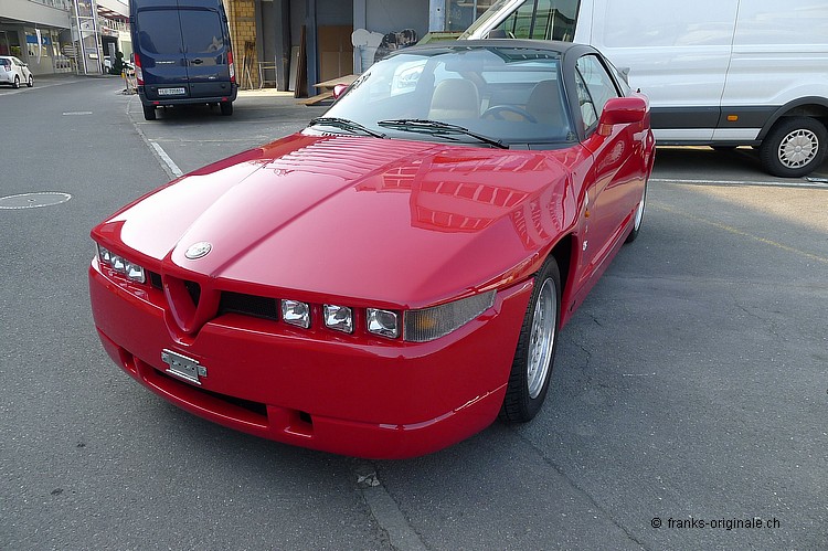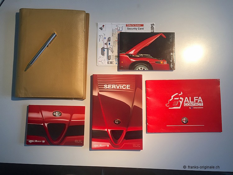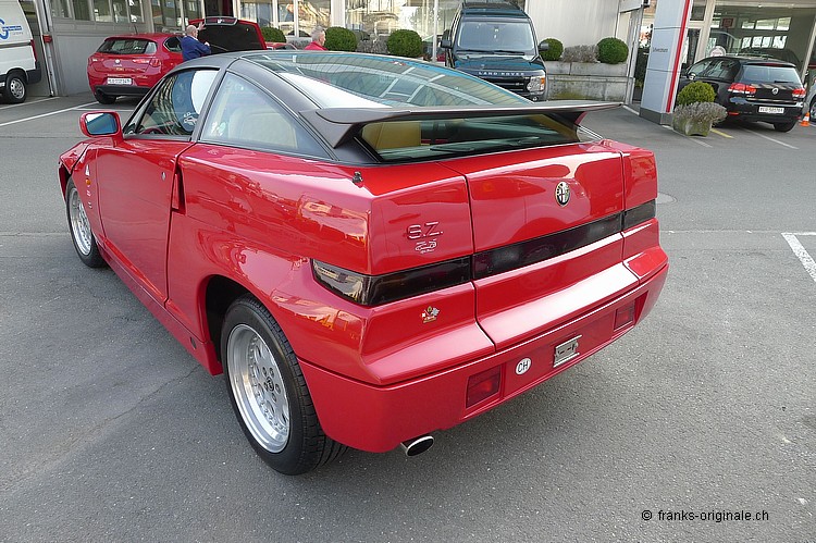 Dieser Zagato SZ macht schon gewaltig Eindruck. Man kennt diesen Klassiker von Bildern und vom Erzählen her. Und wenn dieser Alfa Romeo Zagato dann einmal vor einem steht, kommt man unweigerlich ins Stauen! Der äusserst sportliche Look, die einzigartigen Kontouren, das kompakte Aussehen und die Faszination für das Spzielle! Irgendwie sind die Zagatos alle unverkennbar - und die Zagatos begeistern einfach alle! Un gande spettacolo, incredibile! Der Alfa Romeo SZ Zagato war ein in limitierter Auflage produziertes Fahrzeug. Gerade mal 1'036 Stück sollen während den Jahren 1989 bis 1993 gefertigt worden sein. Unser SZ ist die Nummer 295. Im Handel war dieses SZ-Modell nie zu kaufen. Der schöne Zagato SZ blieb nämlich nur ausgewählten Händlern vorbehalten. Und so kam es, dass viele dieser SZ nach Auslieferung vorerst in der Garage stehen blieben und gar niciht einelöst wurden. So auch bei unserem Exemplar - dem 295. ! Die erste Inverkehrsetzun wäre nämlich im Februar 1999 - fast zehn Jahre nach der Auslieferung an den Händler. Die kurze Geschichte - lückenlos! Unser SZ wurde im 28.02.1991 in Jona als Nr. 295 ausgeliefert. Das zeigt die Gewährleistungsurkunde! Unser SZ hat sehr wenig Kilometer - gerade mal 18'000 km sind auf dem Tacho zu lesen. Alle Dokumente wie Bedienungsanleitung, Servicebuch, Alfa Assistance Kontaktheft, etc. ... sind vorhanden. Alles komplett. Und dazu noch viele Belege von Arbeiten, die im Laufe der Zeit gemacht wurden. Letztmals war der Zagato am 20. Januar 2015 in der Garage. Dort wurde dann der Zahnriemen durch eine offizielle Alfa Romeo Garage ersetzt (inkl. Spanner & Wasserpump). Etwas zur Technik Angetrieben wurde de 1'300 kg schwere Italiener von einem 3.0 Liter, 6 Zylinder Aggregat mit 210 PS. Die Höchstgeschwindigkeit wurde mit 245 km/h angegeben. Der Kaufpreis von DM 102'000.- war ganz schön stolz. Die Fahrzeuge wurden in den Zagato-Werkshallen in Terrazzano di Rho in Handarbeit gefertigt.
