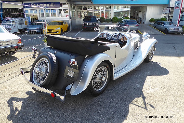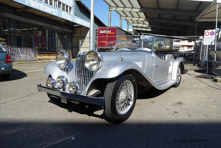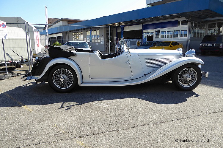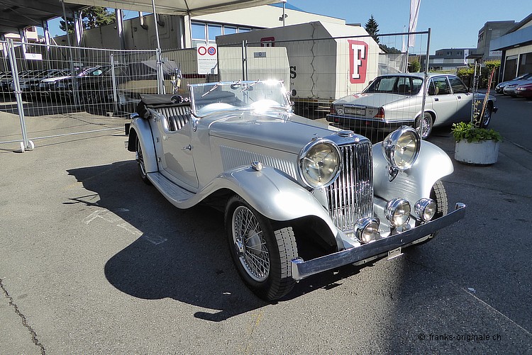 Es freut uns sehr, Ihnen einen aussergewöhnlichen SS-JAGUAR Tourer - 2 1/2 Liter, 4-Plätzer-Roadster - anzubieten zu können. Von dieser sehr seltenen Tourer-Version wurden nur ganz wenige in Handarbeit hergestellt. Das hier angebotene Fahrzeug ist mit Sicherheit eines der Speziellsten und Schönsten überhaupt! Eine einzigartige und gut dokumentierten Geschichte mit gerade mal zwei Vorbesitzern unterstreichen den sehr guten Gesamteindruck zudem. Das Fahrzeug wurde 1936 von der FIrma Swallow Sidecars Ltd. (SS - später dann JAGUAR Ltd.) hergestellt. Der SS-JAGURA Tourer verfügt über alle notwendigen Zertifikate. Alles ist original und die Nummern sind matching - Chassis, Motor und Body! Sogar der originale Kaufvertrag inkl. Garantieschein ist noch vorhanden und bestätigt diesen feinen Umstand. Das angebotene Fahrzeug Beim angebotenen SS-JAGUAR Tourer handelt es sich um einen sehr seltenen vierplätzigen Roadster mit einer fantastisch schönen und entsprechend einzigartigen Geschichte. Aus Archivinformationen und somit aus verlässlicher Quelle wissen wir, dass von diesem Tourer-Modell nur knapp 100 Fahrzeuge hergestellt wurde. Somit sprechen wir hier von einem sehr raren Klassiker. Die Geschichte des SS-Tourers ist zudem sehr schnell erzählt. Gerade mal zwei Besitzer teilen sich die 80 jährige Geschichte seit der 1. Inverkehrssetzung am 05.12.1936. Der erste Besitzer, G.A. Wright aus Croydon GB, kaufte das Fahrzeug im Jahre 1936 und fuhr diesen bis Mitte der 1980er Jahre. Altershalber verkaufte dieser dann das Fahrzeug. Das war somit die Gelegenheit für den aktuellen Besitzer. Dieser wurde auf die Ausschreibung aufmerksam und erwarb den SS Tourer im Jahre 1986. Anschliessend wurde der JAGUAR-Klassiker in die Schweiz überführt. Die gesamte Geschichte des Fahrzeuges ist bestens bekannt und ebenso gut dokumentiert. So sind neben dem Kaufvertrag und vielen zeitgenössischen Dokumenten auch persönliche Korrespondenz von Sir Willisam Lyons (Gründer S.S. Cars Ltd. - später JAGUAR Ltd.) und dem damaligen Besitzer vorhanden. Dies ist nicht nur bemerkenswert - diese Dokumente sind mit Sicherheit auch historisch wertvoll! Expertenmeinung - Empfehlung Der SS-JAGUAR Tourer hatte gerade mal zwei Vorbesitzer in 80 Jahren: 50 Jahre beim 1. Besitzer und danach (bis heute) 31 Jahre beim aktuellen Besitzer! Das klingt fast schon unglaublich - ist aber Tatsache. Beide Besitzer haben dem SS Tourer sehr Sorge getragen und das Fahrzeug in all den Jahren bestens unterhalten. Dieser Umstand plus eine sorgfältig geführte Dokumentation bis zurück zur Auslieferung machen den Tourer zu einem aussergwöhnlich speziellen Klassiker. Zudem wurden vom Tourer-Modell gerade mal 100 Fahrzeug produziert. Wir sind der Meinung, dass dies die Gelegenheit ist, einen authentischen und top-originalen JAGUAR zu erwerben. Bei diesem Fahrzeug stimmt einfach alles: Originalität, Geschichte und das Preis- / Leistungs-Verhältnis. Vergleichbare Fahrzeug gibt es schlicht nicht!