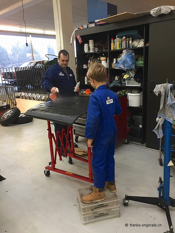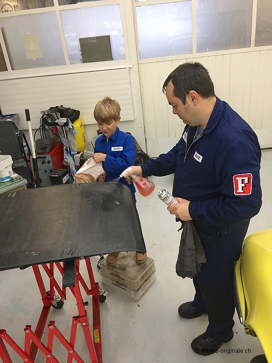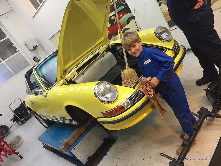 Das war gute Arbeit, lieber Kaspar, du hast uns sehr gut geholfen. Es machte uns zudem sehr grosse Freude, dich mit Begeisterung und Engagement bei der Arbeit zu sehen. Auf dem Arbeitsplan stand der Porsche 911 - die Vorderachse inkl. Aufhängung und Räder mussten runter, das Interieur musste gewechselt werden, Reinigungsarbeiten waren zu tun ... eine lange Liste an aufwändigen Arbeiten, bei welchen Kaspar gut mithelfen konnte. Ferienarbeit mit Begeisterung Wir sagen dir herzlich danke und wünschen noch schöne Ferien - ab Montag gehts wieder zurück in den Schulalltag. Wenn du das nächste Mal wieder Ferien hast, dann zählen wir wiederum auf deine Mitarbeit. Und der DEUTZ-Traktor steht dann hoffentlich noch bei uns im Showroom ... dann starten wir nicht nur, sonder machen damit einen Ausflug damit! Auf gehts - mit viel Schwung im neuen Jahr! Herzliche Grüsse, lieber Kaspar, von deinem Paps!