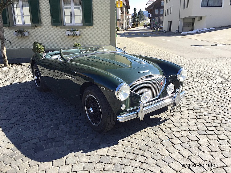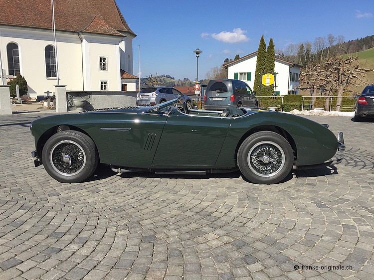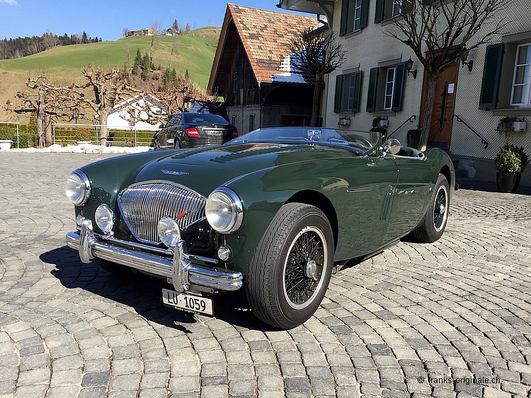 Bei superschönem Wetter, warmen Temperaturen und bei bester Laune genossen wir heute unsere erste Ausfahrt mit unserem schönen 1956er Healey 100M Le Mans. Eine kurze und knackige Fahrt über die Hügellandschaft des Napfberglandes im schönen Luzerner Hinterland sollte es sein. Genauer gesagt in und um Willisau herum ... eine Fahrt vor unserer Haustüre sozusagen! Frühliingswetter und warme Temperaturen Unser Start ist somit mehr als gelungen - Fahrzeug raus, Zündung ein, warten bis Benzinpumpe den Benzinweg und die Vergaser geflutet hatte und dann mit dem Startknopf zum herrlichen Rattern und Knattern treiben. Los gehts ... unsere Fahrt führte uns von Willisau via Hergiswil und Kreuzstiegen nach Luthern. Von dort fuhren wir via Hüswil und Zell wieder über das Stocki nach Willisau. Gelandet sind wir im lang ersehnten und sonnigen Gartenrestaurant. Schön wars - wir hoffen, Sie hatten den heutigen Tag ebenfalls so gut genossen. Die Saison ist also eröffnet ... auf ein baldiges Wiedersehen bei FRANKS!